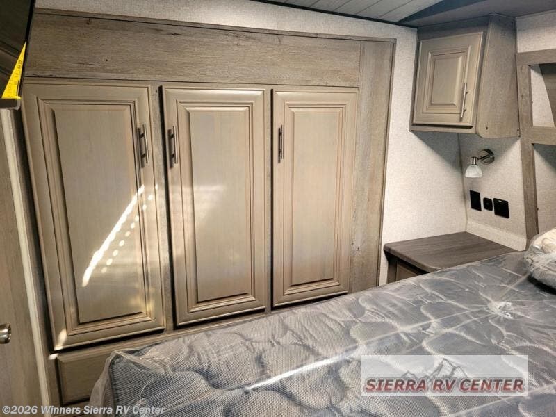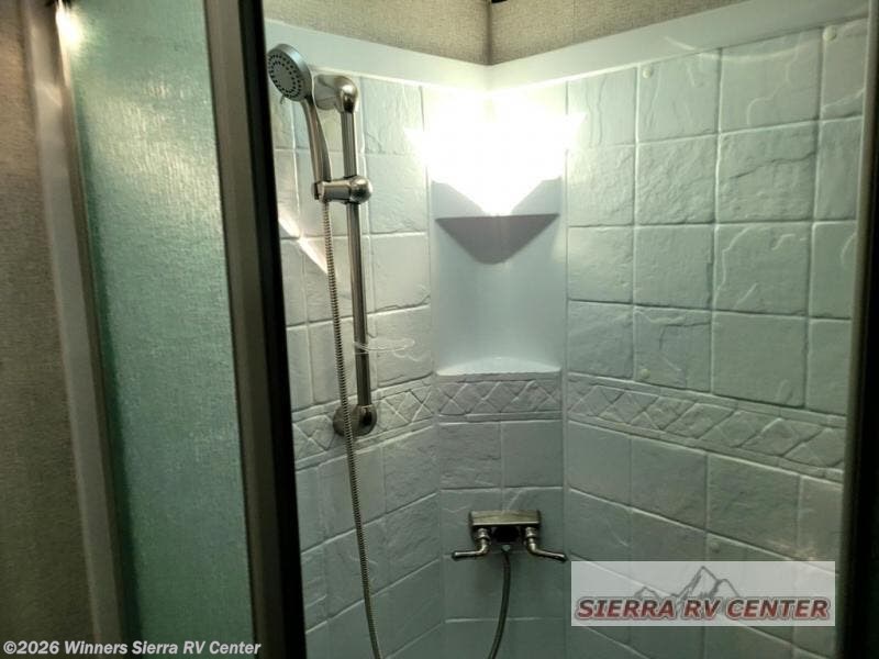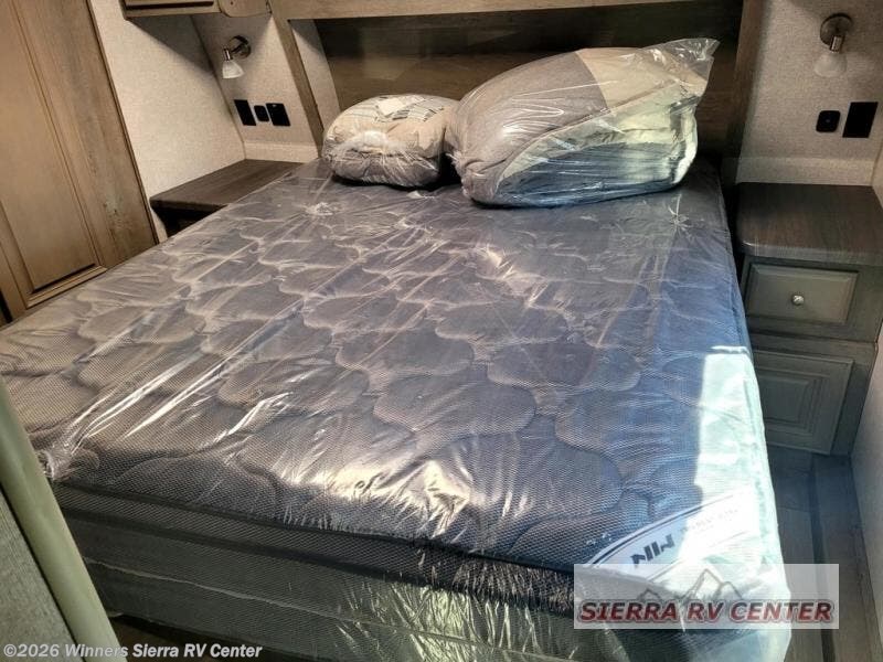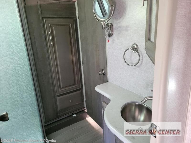 Inside, enjoy residential-style living with premium materials, solid surface countertops, custom cabinetry, and plush furnishings. From the spacious slide-out to the fully equipped kitchen and spa-inspired bath, every detail is crafted to elevate your experience.