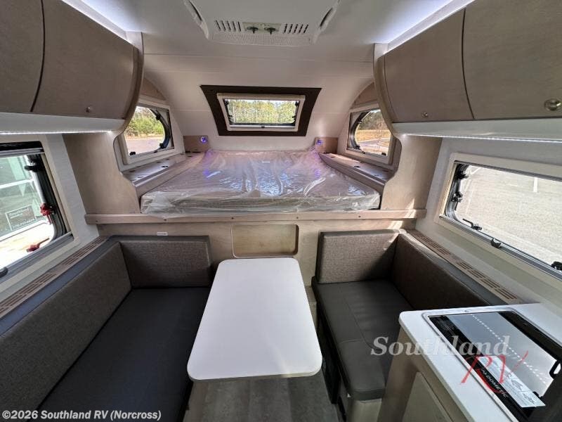 This Cirrus truck camper comes with a Froli sleep system which is a unique and innovative approach to a comfortable night of sleep. While you're sleeping on the bed, you can look through the stargazer window to appreciate the night sky. The dinette can easily be transformed into a second bed, and the sink, two-burner stove, and 4.6 cu. ft. 12V compressor refrigerator give you a place to prepare meals. This model also comes with an external LP hook-up, a Nautilus Water Management System, an exterior shower, and a dual battery compartment.