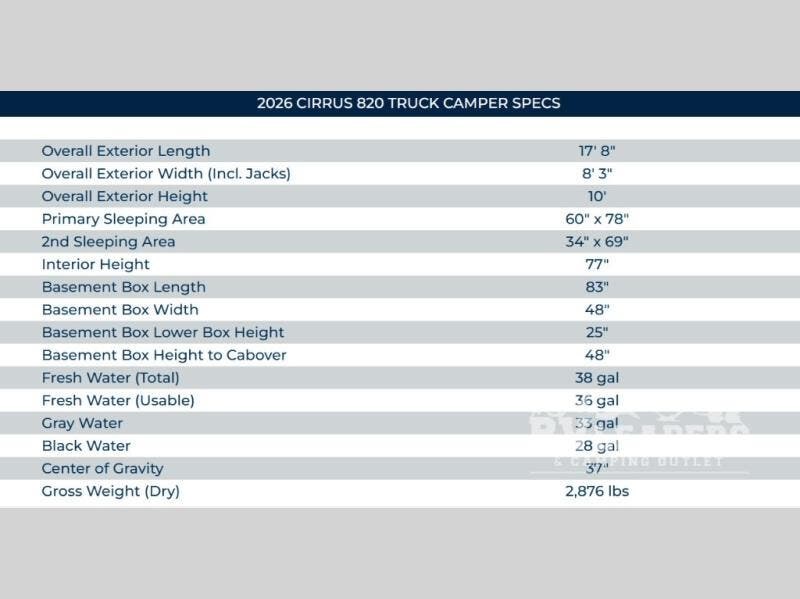 2026 NuCamp Cirrus 820 Specifications