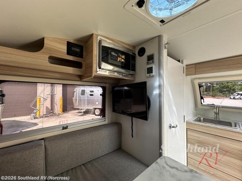 With any TAB 320 teardrop trailer by nüCamp RV, the interior offers premium soft-close cabinetry, a front window, plus a wet bath with a cassette toilet and a molded sink. They are also built with composite flooring and a molded underbelly shield for protection against rock and debris during your journeys. The iconic teardrop design offers an easy-to-tow unit with amenities found in much bigger trailers. Some other highlights include the Alde heating/hot water system, the central air conditioner, 180 watt solar panel, and the Nautilus water system with an external shower.