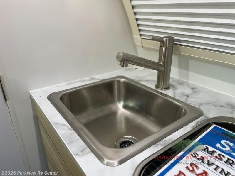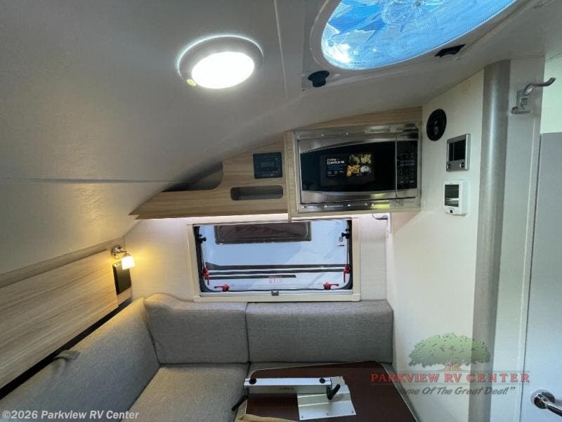 With any TAB 320 teardrop trailer by nuCamp RV, the interior offers premium soft-close cabinetry, a front window, plus a wet bath with a cassette toilet and a molded sink. They are also built with composite flooring and a molded underbelly shield for protection against rock and debris during your journeys. The iconic teardrop design offers an easy-to-tow unit with amenities found in much bigger trailers. Some other highlights include the Alde heating/hot water system, the central air conditioner, 180-watt solar panel, and the Nautilus water system with an external shower.