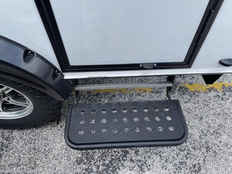 The TAB 320 LITE teardrop trailer by nuCamp RV offers a simple, more affordable, and more approachable way of camping. There is a molded underbelly shield, alloy wheels, aggressive off-road tires, plus Boondock molded fenders and a Boondock entry door handle and step. A front diamond plate storage tub will keep your camp gear secure, and a 180-watt solar panel will provide off-grid capabilities. This teardrop trailer features an LP furnace and an A/C unit, along with an LP water heater for added comfort. Inside, you will love the premium soft-close cabinetry, composite flooring, side porthole windows, and front window for great outdoor views.