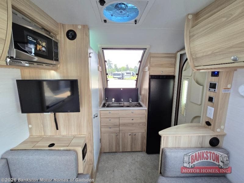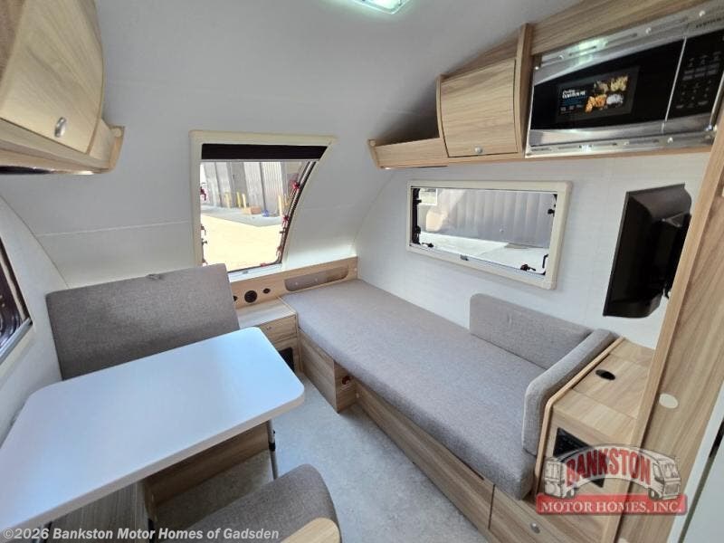 If you enjoy lightweight camping, this teardrop trailer is for you! Everything you need for trips to the lake will be right there with you, including a convenient wet bath with a cassette toilet. The twin bed set up gives you cozy sleeping space, and they can convert to a dinette on one side with extra seating on the other side! There are stargazer windows to give you great views of your surroundings, and the open floorplan will have you feeling right at home. A glass top sink and two burner cooktop combo will let you cook meals each day, and the 5.0 cu. ft. 12V compressor refrigerator will be perfect for perishables. If the optional Black Canyon upgrade is chosen, the tongue weight will be 386 lbs. and the gross dry weight will be 2,729 lbs. If the optional Classic Package is chosen, the tongue weight will be 389 lbs., and the gross dry weight will be 2,692 lbs. See dealer for more details!