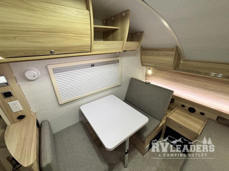 You're going to love camping in this teardrop clamshell trailer! Once you arrive at the campground, you can make lunch on the exterior rear hatch kitchen. There is a two-burner glass-top stove and a 30L 12-volt cooler here to quickly make lunch and grab a cold drink. The interior 5 cu. ft. 12-volt compressor refrigerator will provide more food storage, and an optional microwave can be added inside for the option to heat up quick meals indoors. You're sure to get a great night's rest on the twin-size bed, and the booth dinette can convert to a second twin-size bed so you can sleep two comfortably. The optional Black Canyon Upgrade can be added that includes a solar upgrade to dual 190W panels, holding tank heaters and underglow lights.