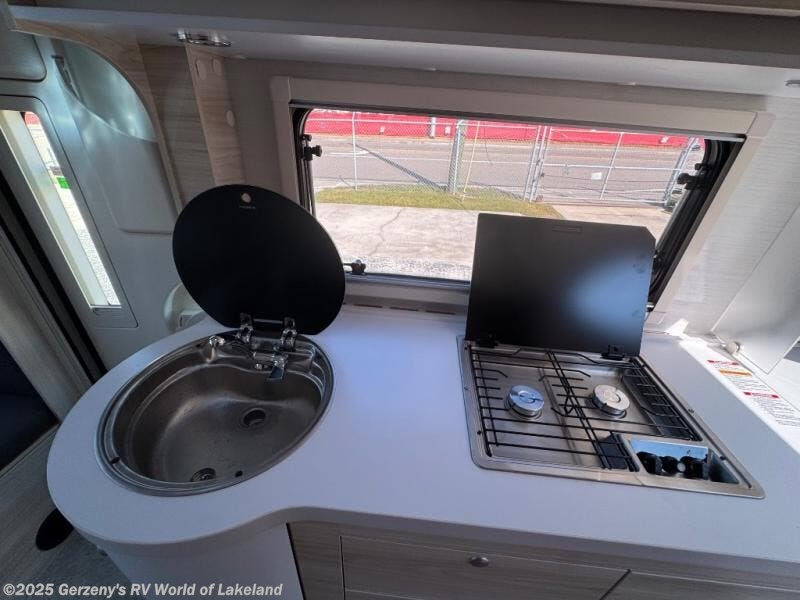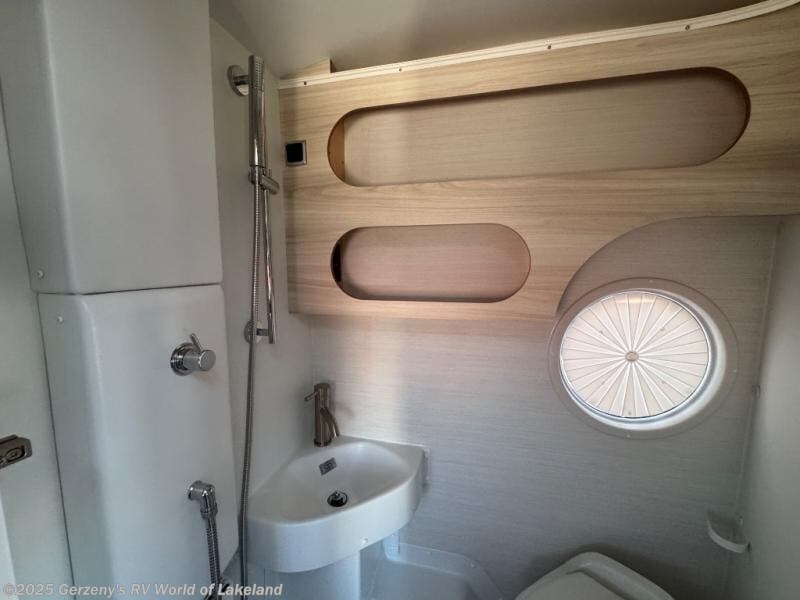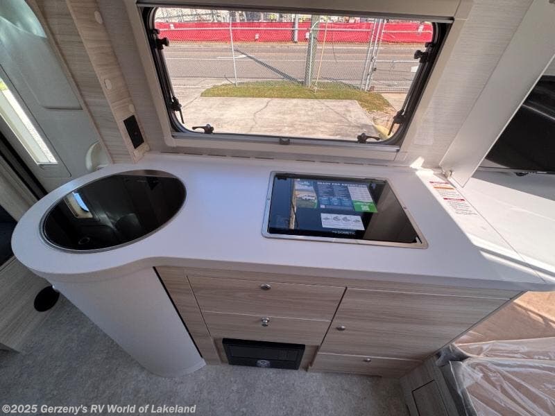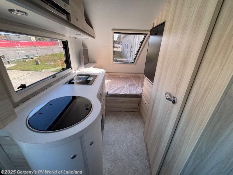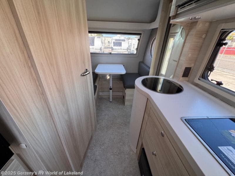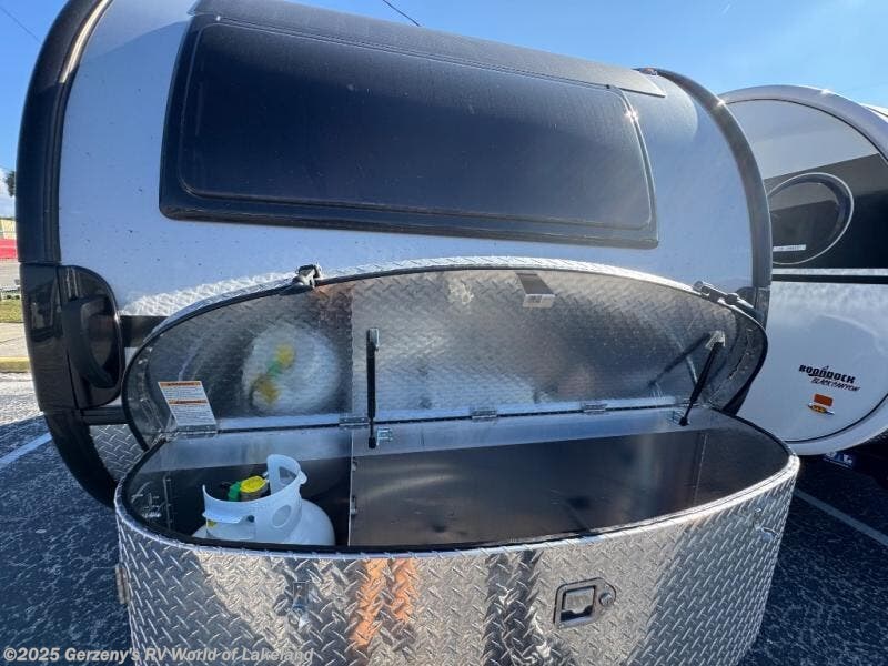 This teardrop trailer offers sleeping space for three with two sleeping areas; one up front and one in the rear. The dinette allows you to eat and relax during the day, and at night this space becomes sleeping space for one. And if you're needing even more sleeping space, you can choose the optional bunk floorplan! The queen-size sleeping area is located on the opposite side with the wet bath in between for convenience for all. The galley kitchen will give the cook a place to make warm meals and store leftovers in the 4.6 cu. ft. 12V compressor refrigerator. Everyone can watch the 24" TV through the Bluetooth media center before bedtime, or in the morning as you all plan your next activity. And the Alde central heating/hot water system, as well as central air conditioning will keep you comfortable wherever you set up. An optional Black Canyon Upgrade is available with an additional 310-watt solar panel, holding tank heaters, underglow lights, and an XL diamond plate storage tub.