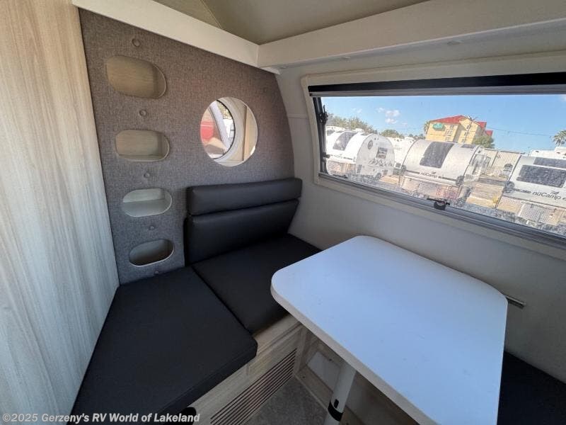 The TAB 400 by nuCamp RV is mighty in essentials and spacious for a teardrop trailer! There is a Froli sleep system, a spacious wet bath, a galley kitchen and plenty of storage plus a dinette. Inside you will enjoy the Bluetooth media center, premium soft-close cabinetry, and an expansive picture window. You'll also find composite flooring, a rail table, and a power roof fan to name a few more comforts. The Convenience Package comes with a 310-watt solar panel, a 1,200-watt power inverter, a 100AH 12-volt lithium battery, and more features to help you camp off grid! Along with the optional Black Canyon Upgrade, you can also choose the optional Lithium Battery Upgrade, an optional microwave, and an optional Maxxair fan to further customize your camper!