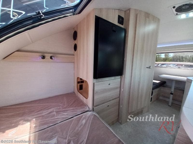 This teardrop trailer offers sleeping space for three with two sleeping areas; one up front and one in the rear. The dinette allows you to eat and relax during the day, and at night this space becomes sleeping space for one. And if you're needing even more sleeping space, you can choose the optional bunk floorplan! The queen-size sleeping area is located on the opposite side with the wet bath in between for convenience for all. The galley kitchen will give the cook a place to make warm meals and store leftovers in the 4.6 cu. ft. 12V compressor refrigerator. Everyone can watch the 24" TV through the Bluetooth media center before bedtime, or in the morning as you all plan your next activity. And the Alde central heating/hot water system, as well as central air conditioning will keep you comfortable where ever you set up. The Lithium battery upgrade includes 400 Ah 12V lithium battery bank with internal heat and a 3,000 watt inverter/charger. The Black Canyon optional package will have a dry tongue weight of 380 lbs., and a total gross dry weight of 2,946 lbs.