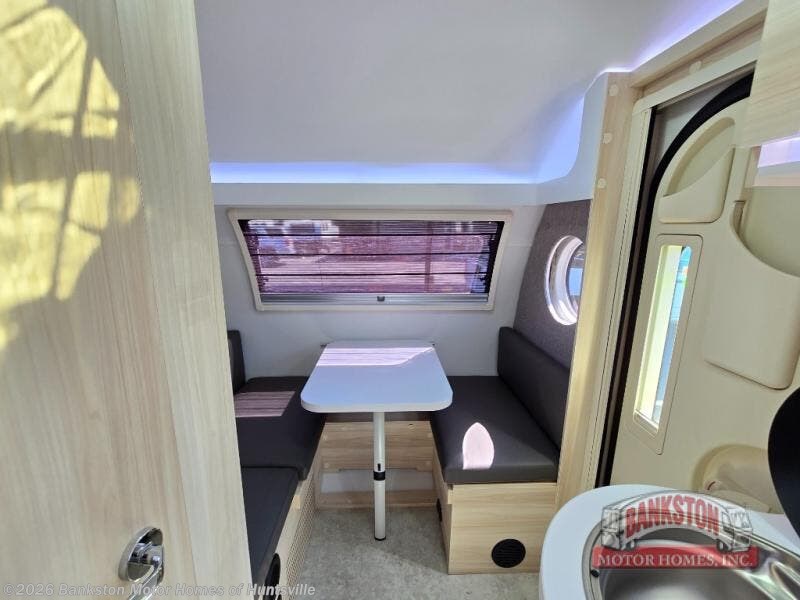 The TAB 400 by nuCamp RV is mighty in essentials and spacious for a teardrop trailer! There is a Froli sleep system, a spacious wet bath, a galley kitchen and plenty of storage plus a dinette. Inside you will enjoy the Bluetooth media center, premium soft-close cabinetry, and an expansive picture window. You'll also find composite flooring, a rail table, and a power roof fan to name a few more comforts. The Convenience Package comes with a 310-watt solar panel, a 1,200-watt power inverter, a 100AH 12-volt lithium battery, and more features to help you camp off grid! Along with the optional Black Canyon Upgrade, you can also choose the optional Lithium Battery Upgrade, an optional microwave, and an optional Maxxair fan to further customize your camper!