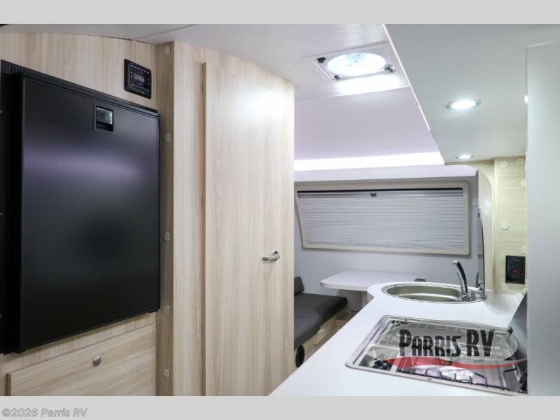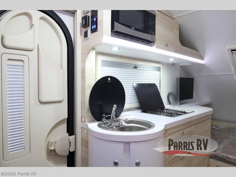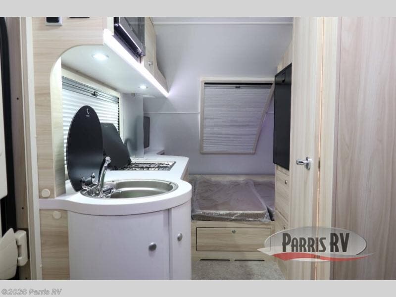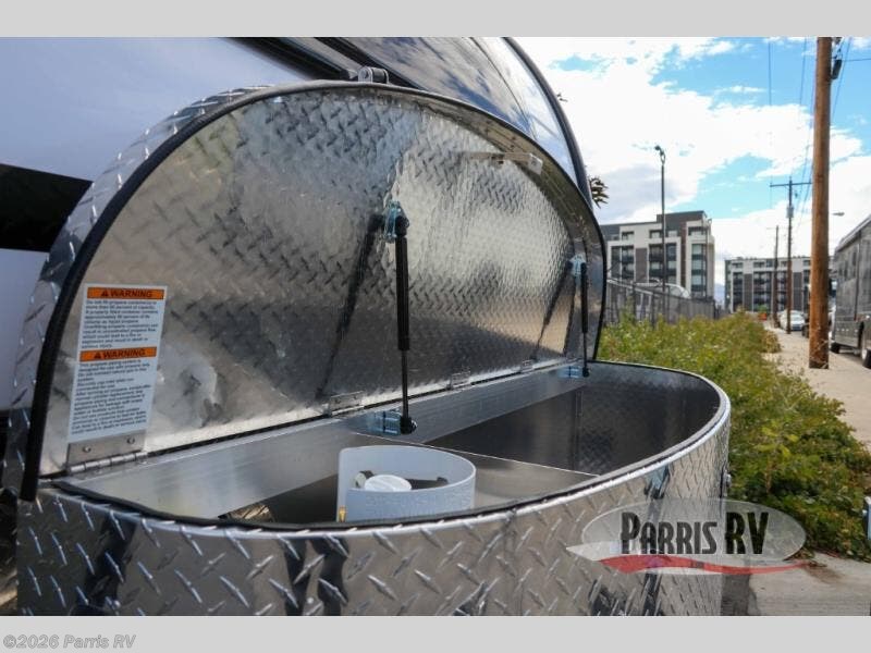This teardrop trailer offers sleeping space for three with two sleeping areas; one up front and one in the rear. The dinette allows you to eat and relax during the day, and at night this space becomes sleeping space for one. And if you're needing even more sleeping space, you can choose the optional bunk floorplan! The queen-size sleeping area is located on the opposite side with the wet bath in between for convenience for all. The galley kitchen will give the cook a place to make warm meals and store leftovers in the 4.6 cu. ft. 12V compressor refrigerator. Everyone can watch the 24" TV through the Bluetooth media center before bedtime, or in the morning as you all plan your next activity. And the Alde central heating/hot water system, as well as central air conditioning will keep you comfortable wherever you set up. An optional Black Canyon Upgrade is available with an additional 310-watt solar panel, holding tank heaters, underglow lights, and an XL diamond plate storage tub.