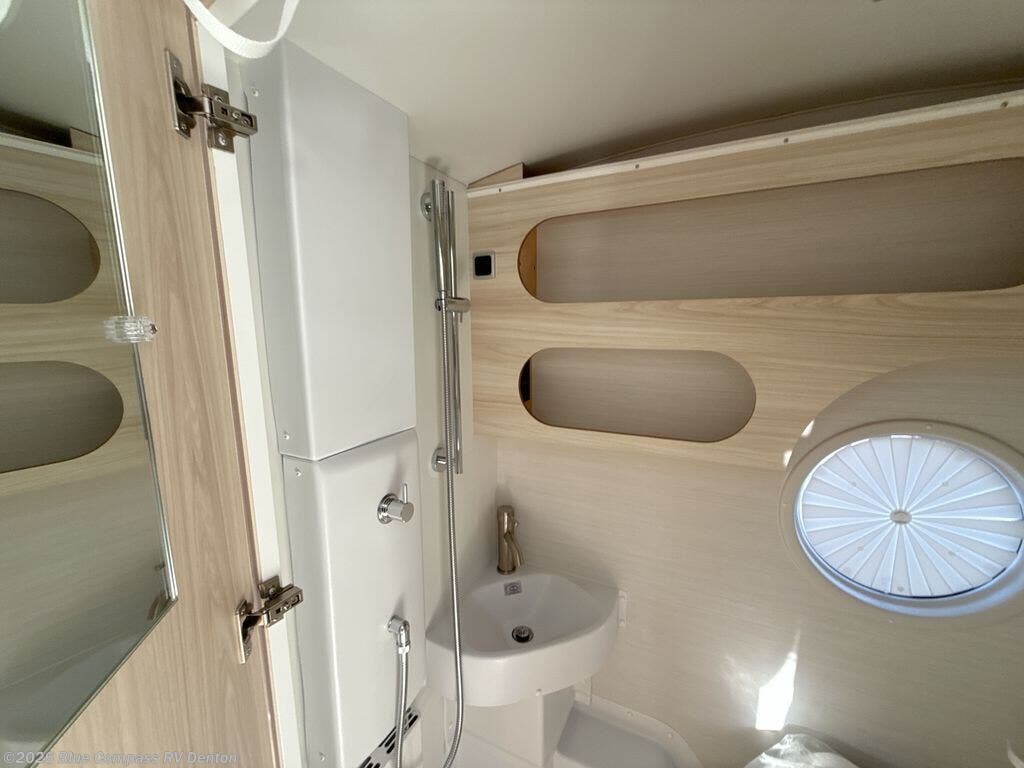 This teardrop trailer offers sleeping space for three with two sleeping areas; one up front and one in the rear. The dinette allows you to eat and relax during the day, and at night this space becomes sleeping space for one. And if you're needing even more sleeping space, you can choose the optional bunk floorplan! The queen-size sleeping area is located on the opposite side with the wet bath in between for convenience for all. The galley kitchen will give the cook a place to make warm meals and store leftovers in the 4.6 cu. ft. 12V compressor refrigerator. Everyone can watch the 24" TV through the Bluetooth media center before bedtime, or in the morning as you all plan your next activity. And the Alde central heating/hot water system, as well as central air conditioning will keep you comfortable wherever you set up. An optional Black Canyon Upgrade is available with an additional 310-watt solar panel, holding tank heaters, underglow lights, and an XL diamond plate storage tub.