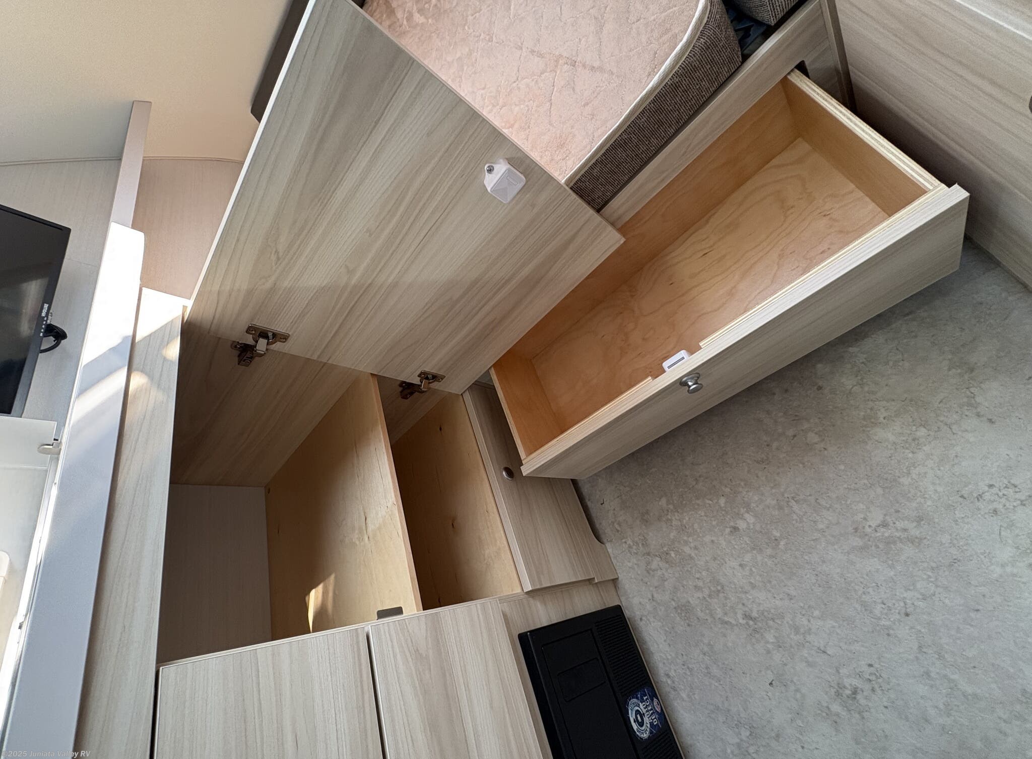 - Living features: Pleated shades, power roof vent, roof vents, Fantastic Fan