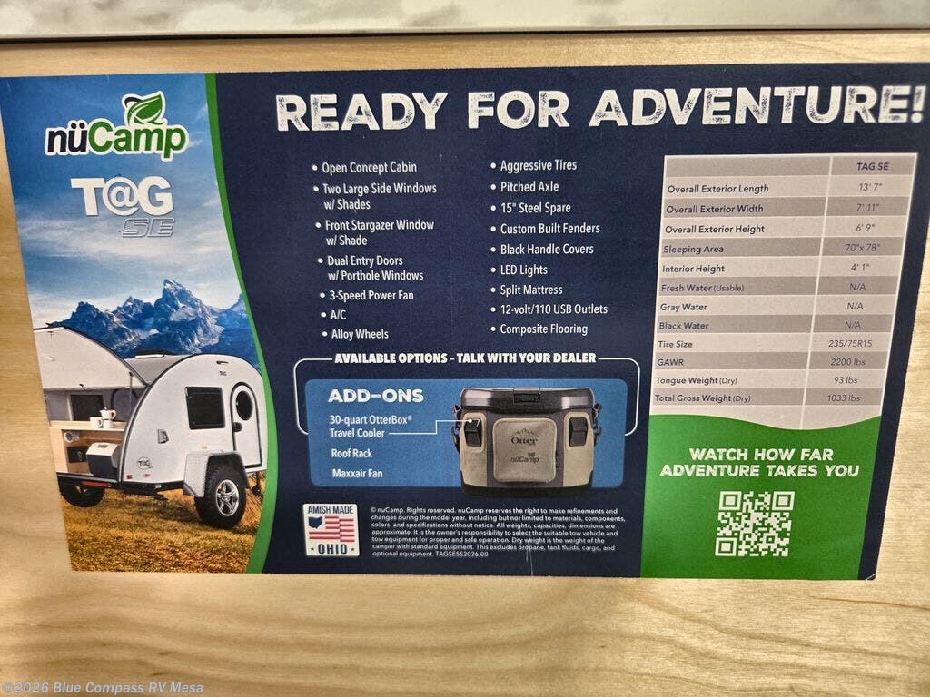 Request More Info on this 2026 NuCamp TAG SE Std. Model Offered for sale by Blue Compass RV Mesa