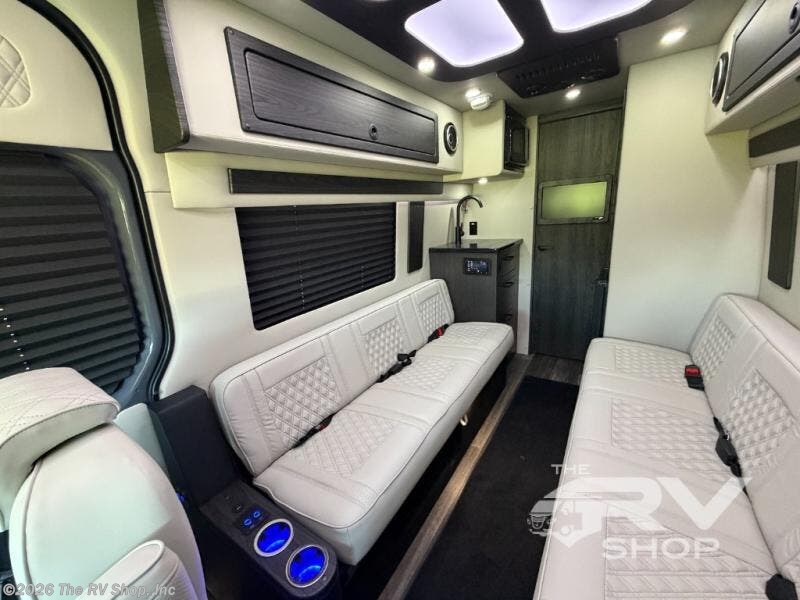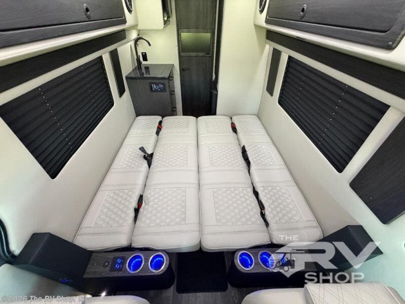 With any VCRUISE Class B diesel motorhome by OGV Luxury Coach, you will find high-quality and style at every turn. These Class B conversion vans feature color match bumpers and side moldings, a 5,000 lb. towing capacity, and an exterior utility bay with 30 Amp shore power, dual 110V outlets, an outside shower, plus tank fill and rinse for added convenience. The driver will love having a rear view camera for easy maneuvering, along with active brake assist, crosswind assist, and headlight assist. You'll love the interior of the VCRUISE with its carpeted floor mats throughout the cabin, custom seating with double needle stitching, and more luxurious features. There is also an integrated touchscreen control system, plus a 270 Ah lithium auxiliary house battery and 2,000 watt inverter to keep you powered up.