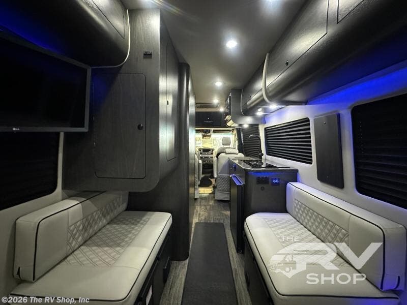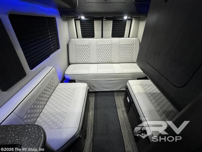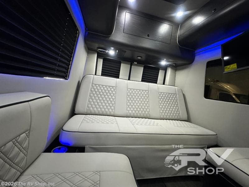 Head across the state or country in this seven passenger AWD coach! There is a rear lounge/fold out bed if two travelers plan to stay the night, and the wet bath will let you freshen up in the morning. A stainless steel microwave and double induction cooktop means you can cook inside instead of picking up take-out, and there is a 3.75 cu. ft. 12V refrigerator/freezer for food storage. Along with the lounge and four cab seats, there are also two jump seats and a lagun table that will be perfect for meal times or when playing cards.