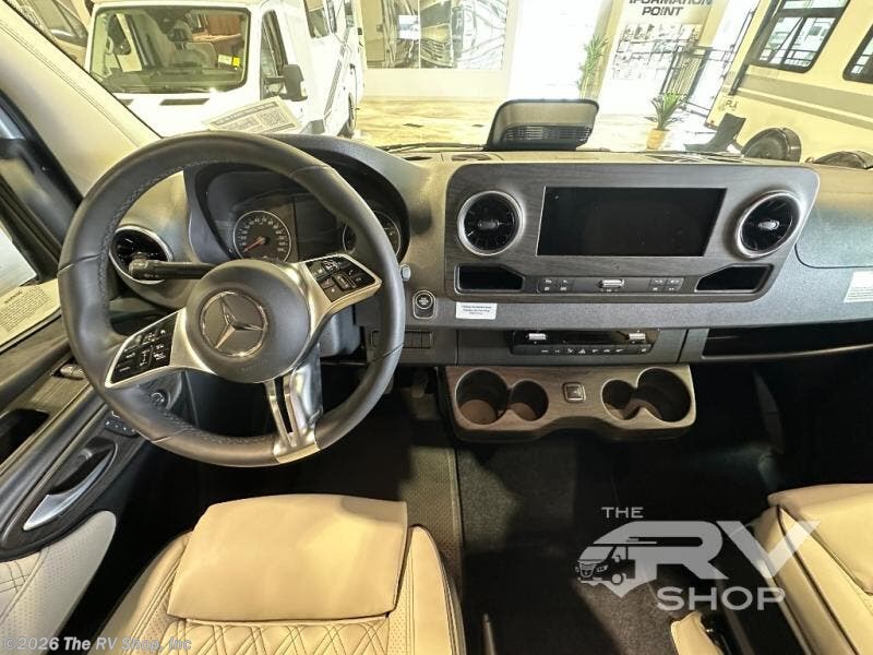 With any V-RV Class B diesel motorhome by OGV Luxury Coach, you will enjoy a smooth drive and innovative features to make van life easier than you think. The Anywhere Package comes with a 1080 Ah lithium battery, 3,000 watt inverter, 340 watts of auxiliary solar power, and a dual alternator with a Wakespeed Charge controller for endless power. You will also appreciate the Mercedes-Benz suspension bundle (RV1) with enhancement, added safety features, and a rear view camera system for hassle-free parking. Automotive grade fabrics come standard inside, along with side and rear screen doors, custom woodwork with satin finish, multiple 110V dual outlets, and a rear JL audio entertainment system to ensure you'll never go bored.