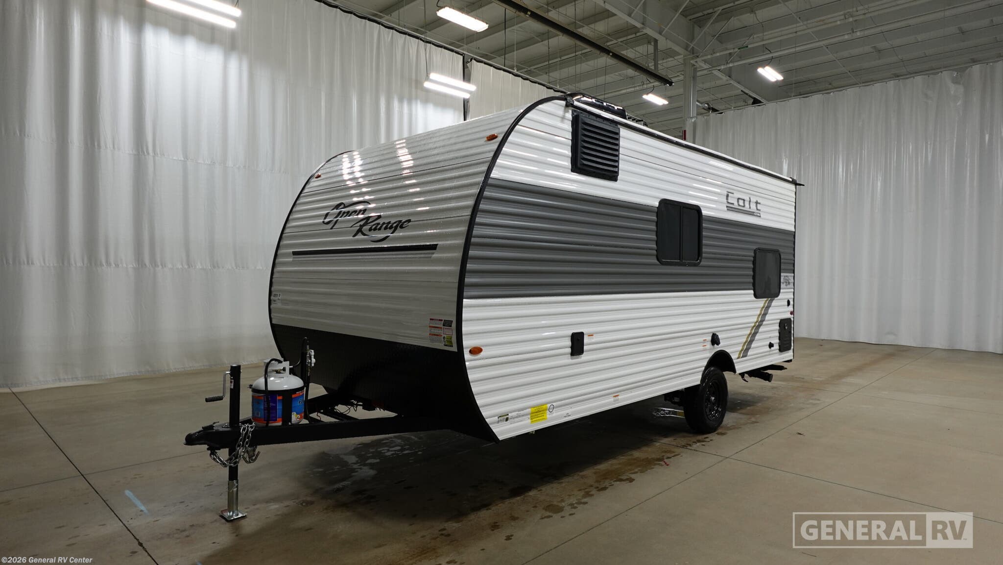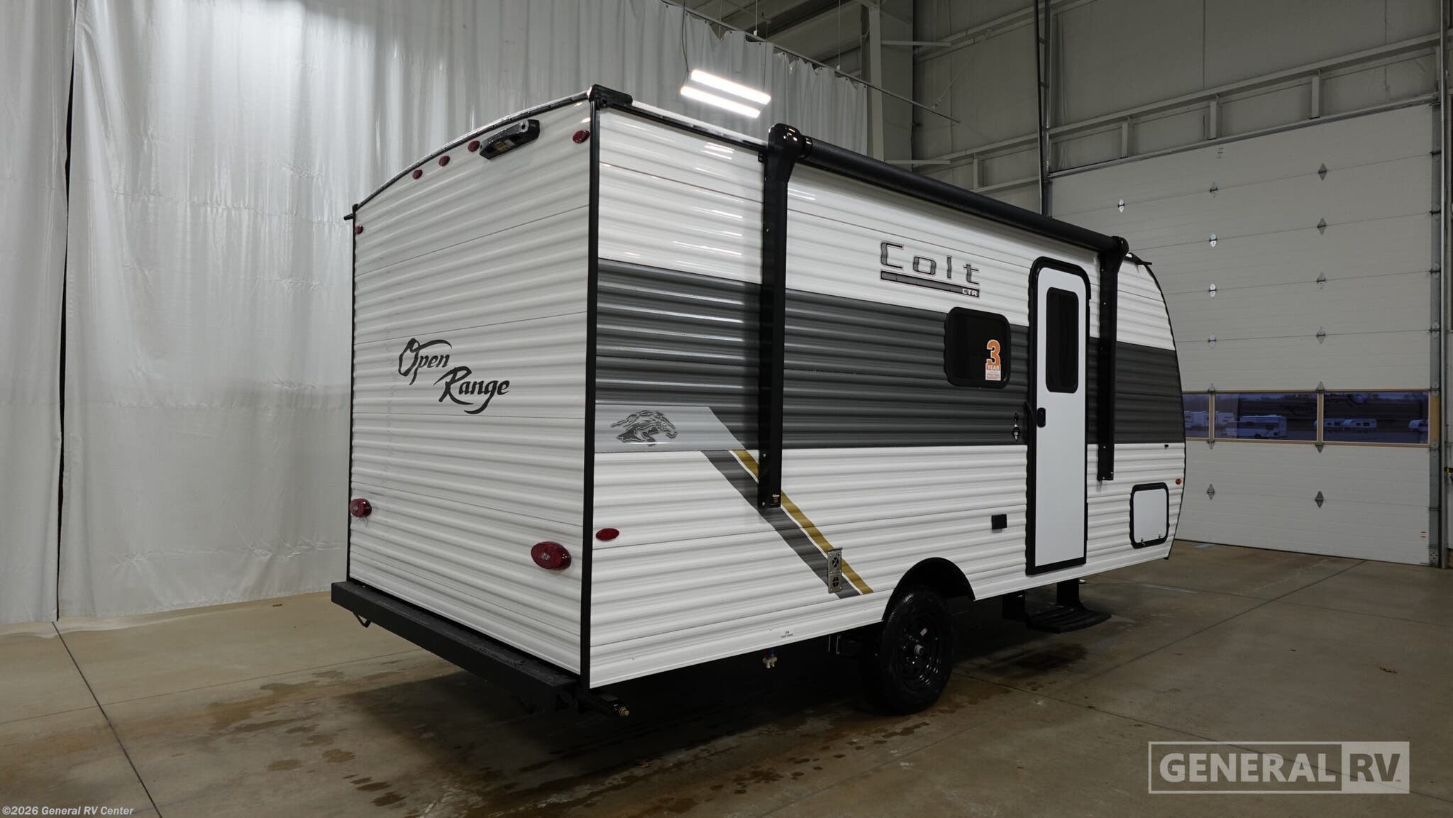 Open Range RV Colt travel trailer 17BH - CTR Edition highlights: Bunk Beds Overhead Cabinets Exterior Storage 36" Tub/Shower Front Queen Bed This easy to tow travel trailer features compact sleeping spaces thanks to the bunk beds in the rear corner, and the private bath is right next to the bunks for easy nighttime use! You'll have the front queen bed to yourselves, while another guest or two little ones convert the booth dinette to sleeping space. A two-burner cooktop and microwave oven will let you make meals each day, and there is a 12V refrigerator to keep your cold items fresh. Outside, you'll enjoy the 10' power awning for added shade, and there is exterior storage to keep fishing poles, hiking gear and more! With any Colt travel trailer by Open Range RV, you can be sure you're getting a budget-friendly unit designed to fit your lifestyle! Each one is built to last with a PVC roofing membrane and built-in A-frame, plus there are nitrogen-filled radial tires and self-adjusting electric brakes for easy towing. You will appreciate the utilities that include 30-amp service, an A/C unit, and an on-demand tankless water heater. A few interior comforts include vinyl flooring throughout, solid hardwood cabinet doors, and residential grade kitchen countertops to make your space feel more like home.