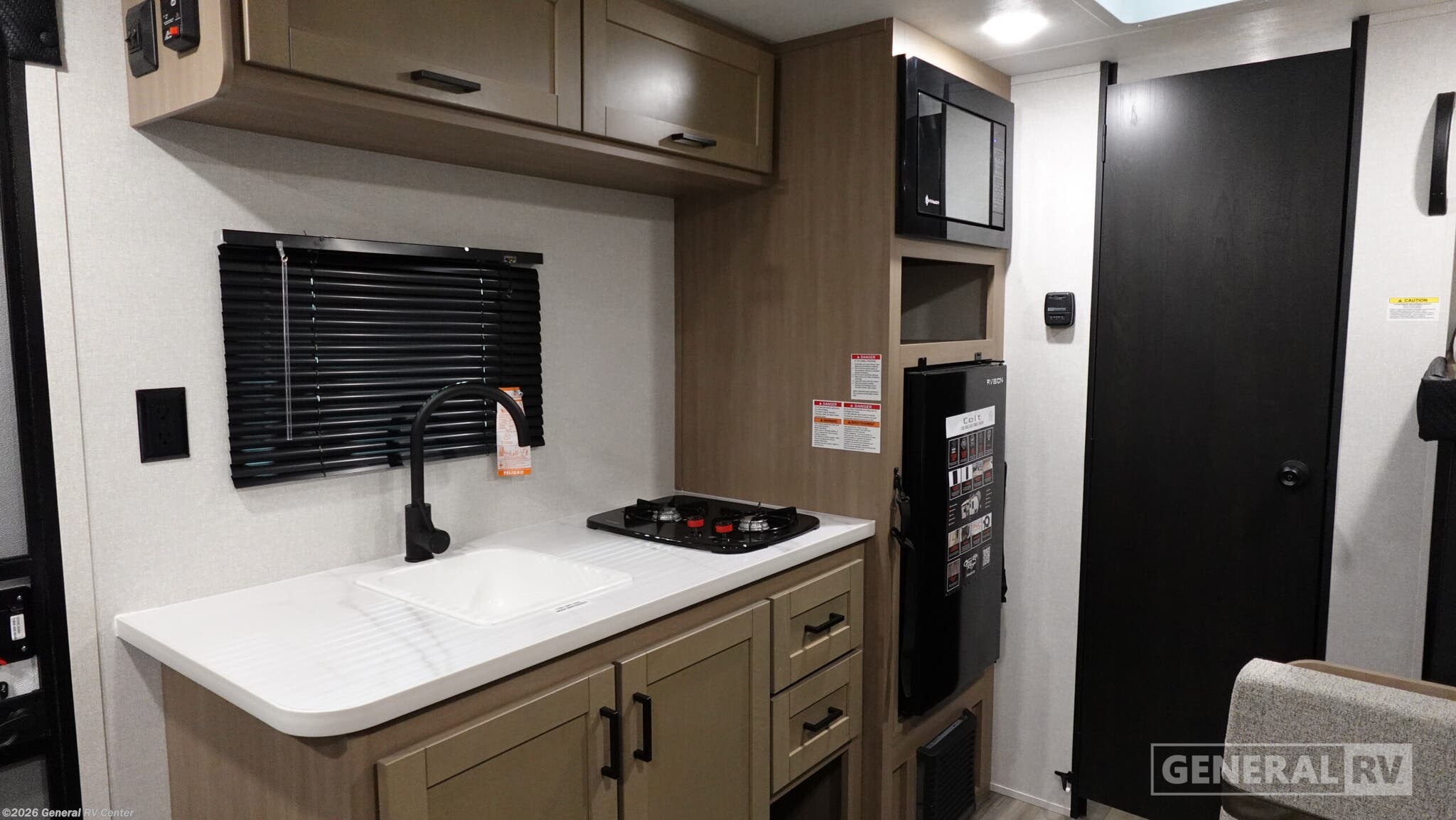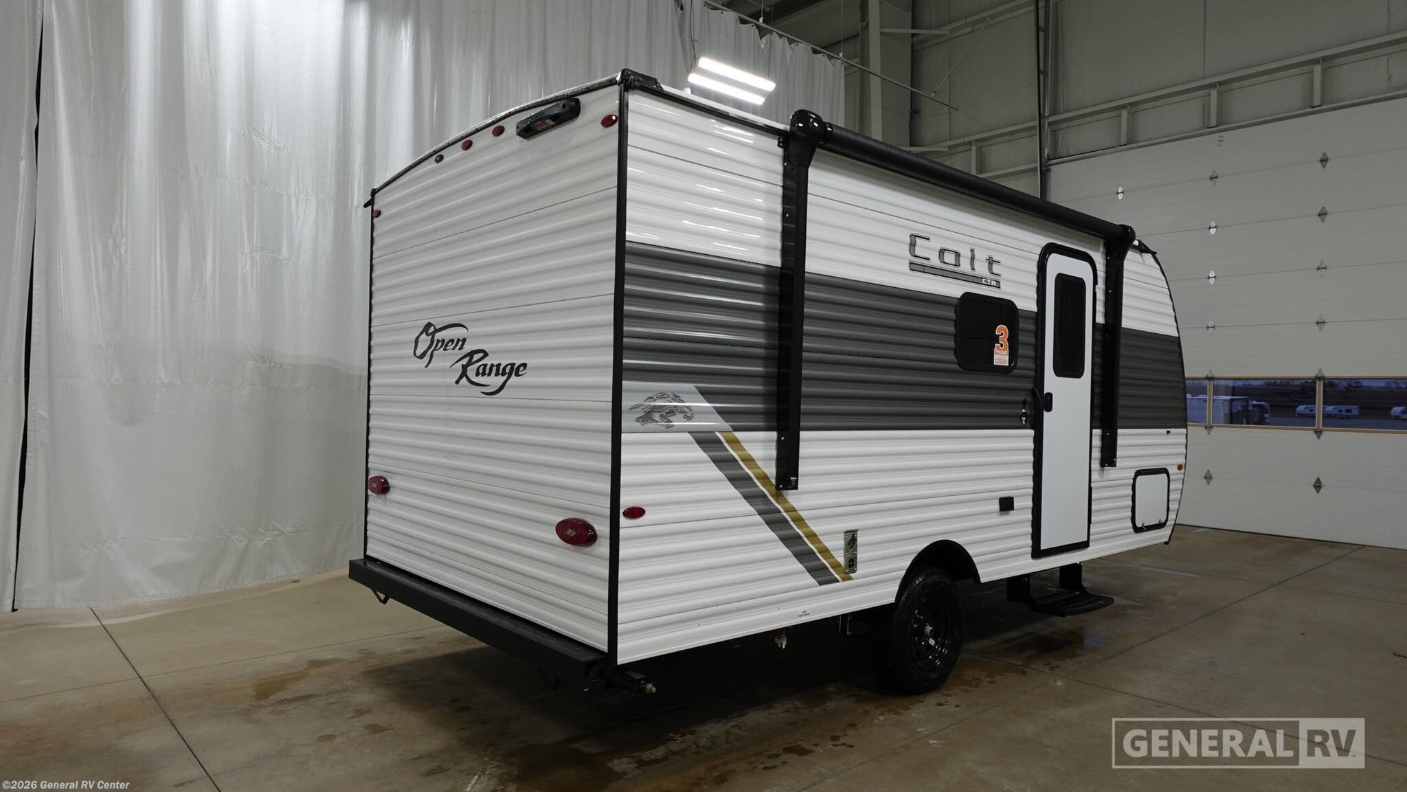 Open Range RV Colt travel trailer 17BH - CTR Edition highlights: Bunk Beds Overhead Cabinets Exterior Storage 36" Tub/Shower Front Queen Bed This easy to tow travel trailer features compact sleeping spaces thanks to the bunk beds in the rear corner, and the private bath is right next to the bunks for easy nighttime use! You'll have the front queen bed to yourselves, while another guest or two little ones convert the booth dinette to sleeping space. A two-burner cooktop and microwave oven will let you make meals each day, and there is a 12V refrigerator to keep your cold items fresh. Outside, you'll enjoy the 10' power awning for added shade, and there is exterior storage to keep fishing poles, hiking gear and more! With any Colt travel trailer by Open Range RV, you can be sure you're getting a budget-friendly unit designed to fit your lifestyle! Each one is built to last with a PVC roofing membrane and built-in A-frame, plus there are nitrogen-filled radial tires and self-adjusting electric brakes for easy towing. You will appreciate the utilities that include 30-amp service, an A/C unit, and an on-demand tankless water heater. A few interior comforts include vinyl flooring throughout, solid hardwood cabinet doors, and residential grade kitchen countertops to make your space feel more like home. There are additional features available, depending on the edition you choose, along with available options to further customize your Colt travel trailer!