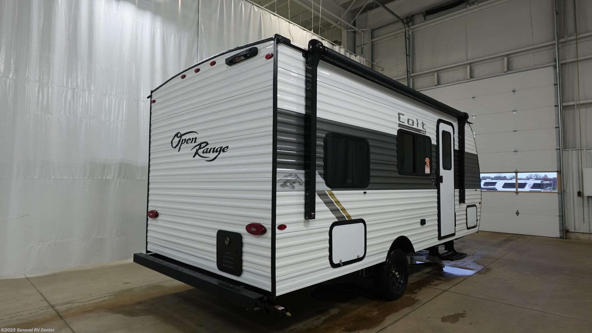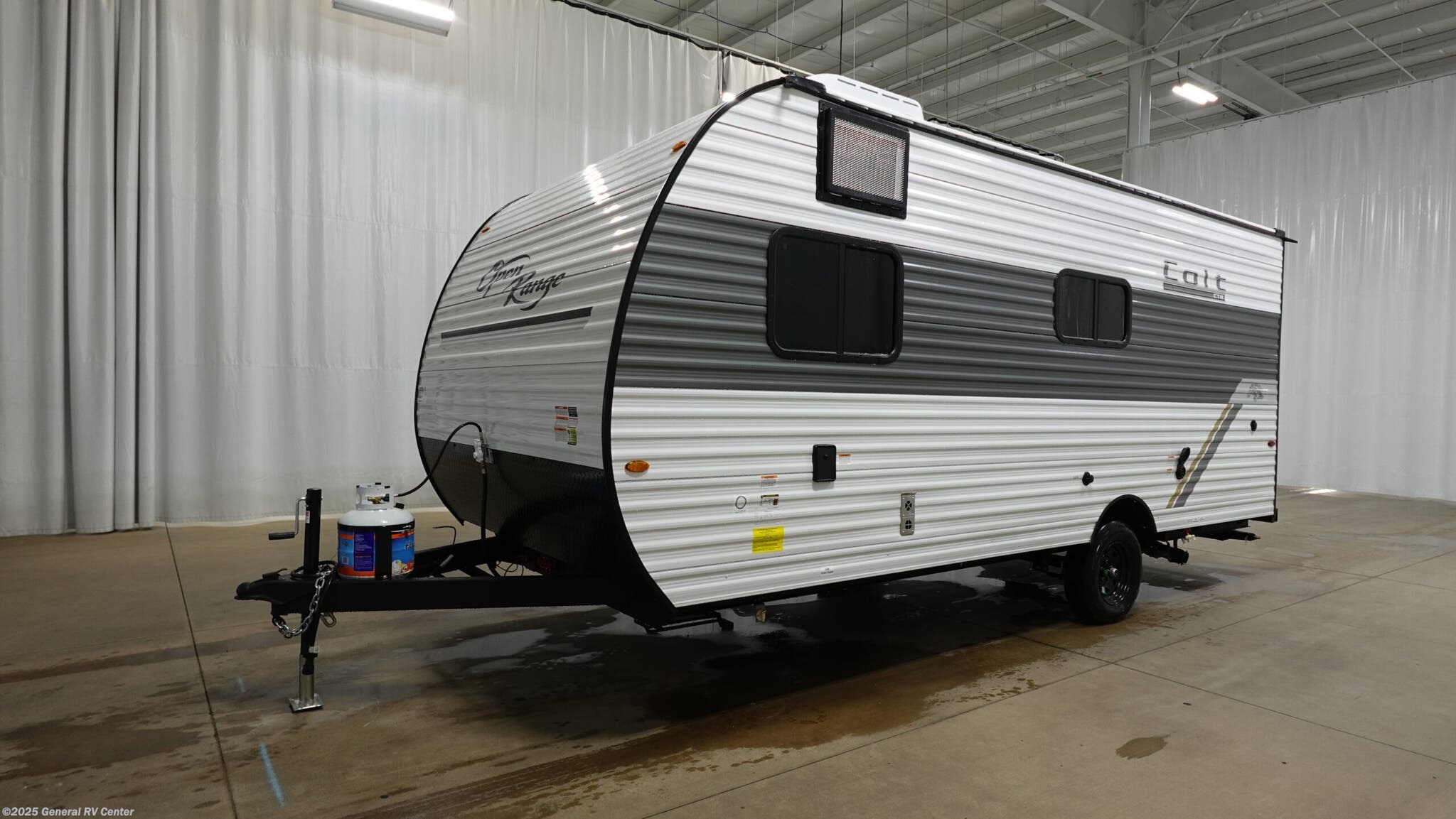 Open Range RV Colt travel trailer 17DB - CTR Edition highlights: Double-Size Bunk Beds Overhead Cabinets L-Shaped Dinette 40" Shower Front Queen Bed This easy to tow travel trailer features compact sleeping spaces thanks to the double-size bunk beds in the rear corner, and the private bath is right next to the bunks for easy nighttime use! You'll have the front queen bed to yourselves, along with a wardrobe, nightstand, and overhead shelf for your things. A two-burner cooktop and microwave oven will let you make meals each day, and there is a 12V refrigerator to keep your cold items fresh. Outside, you'll enjoy the 10' power awning for added shade, and there are two exterior storage compartments to keep fishing poles, hiking gear and more! With any Colt travel trailer by Open Range RV, you can be sure you're getting a budget-friendly unit designed to fit your lifestyle! Each one is built to last with a PVC roofing membrane and built-in A-frame, plus there are nitrogen-filled radial tires and self-adjusting electric brakes for easy towing. You will appreciate the utilities that include 30-amp service, an A/C unit, and an on-demand tankless water heater. A few interior comforts include vinyl flooring throughout, solid hardwood cabinet doors, and residential grade kitchen countertops to make your space feel more like home.