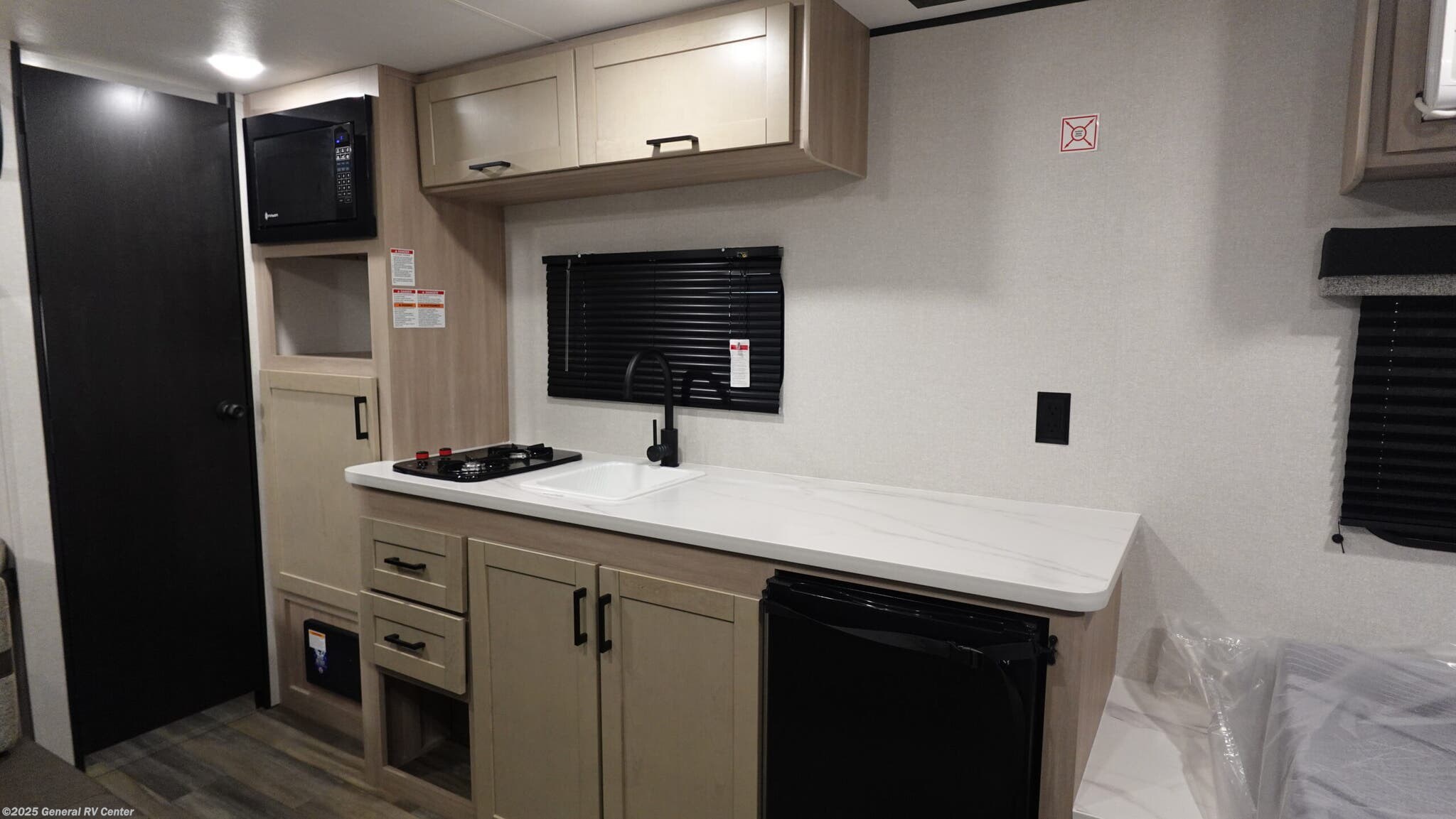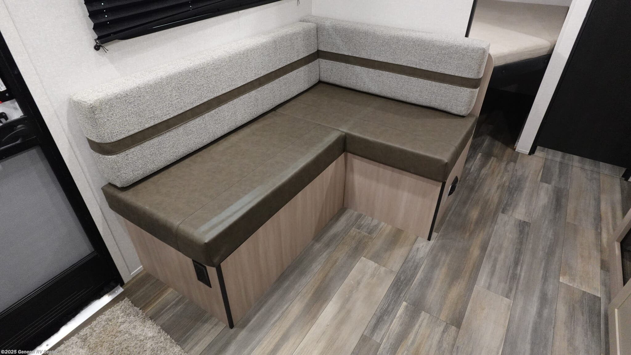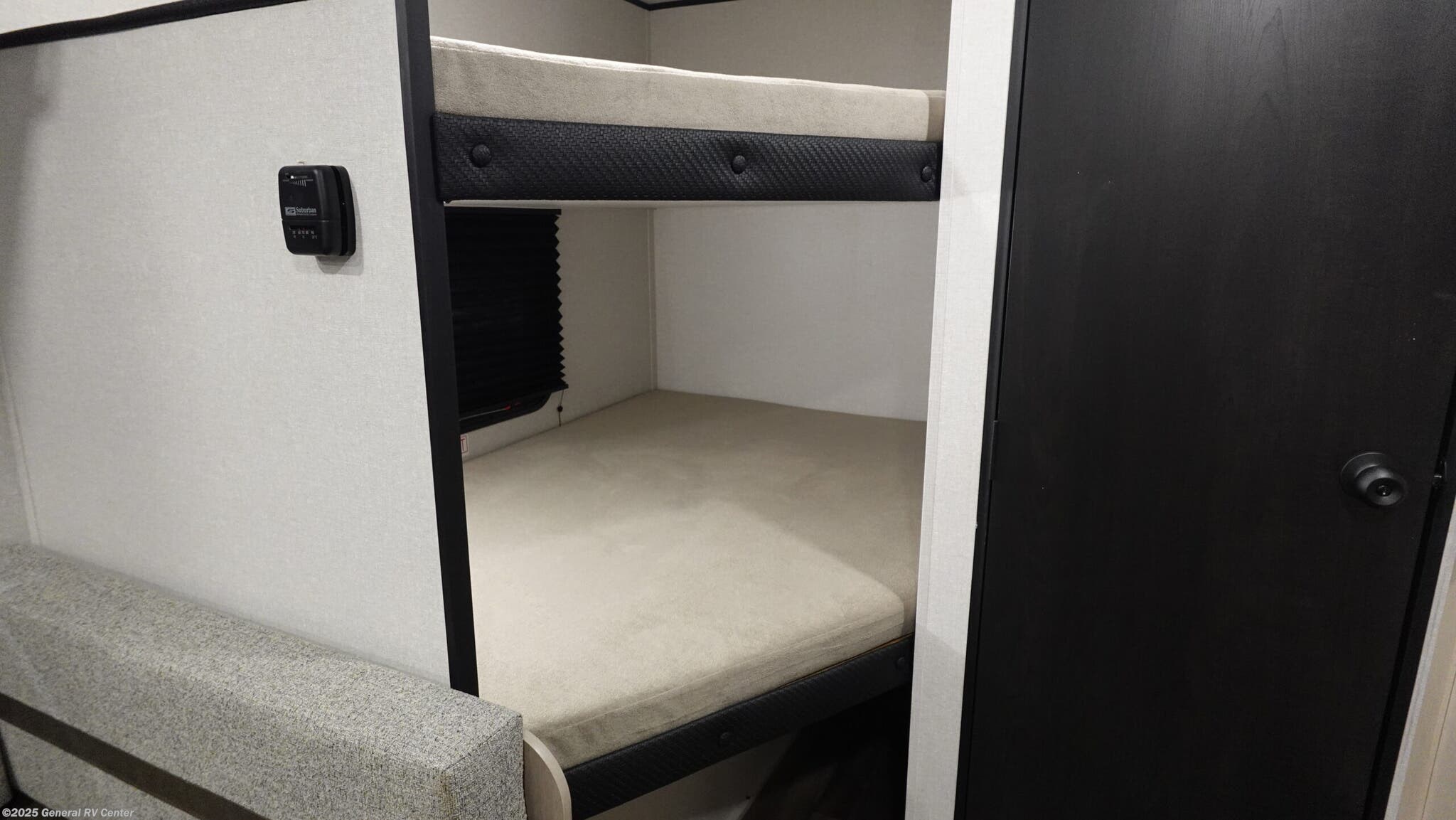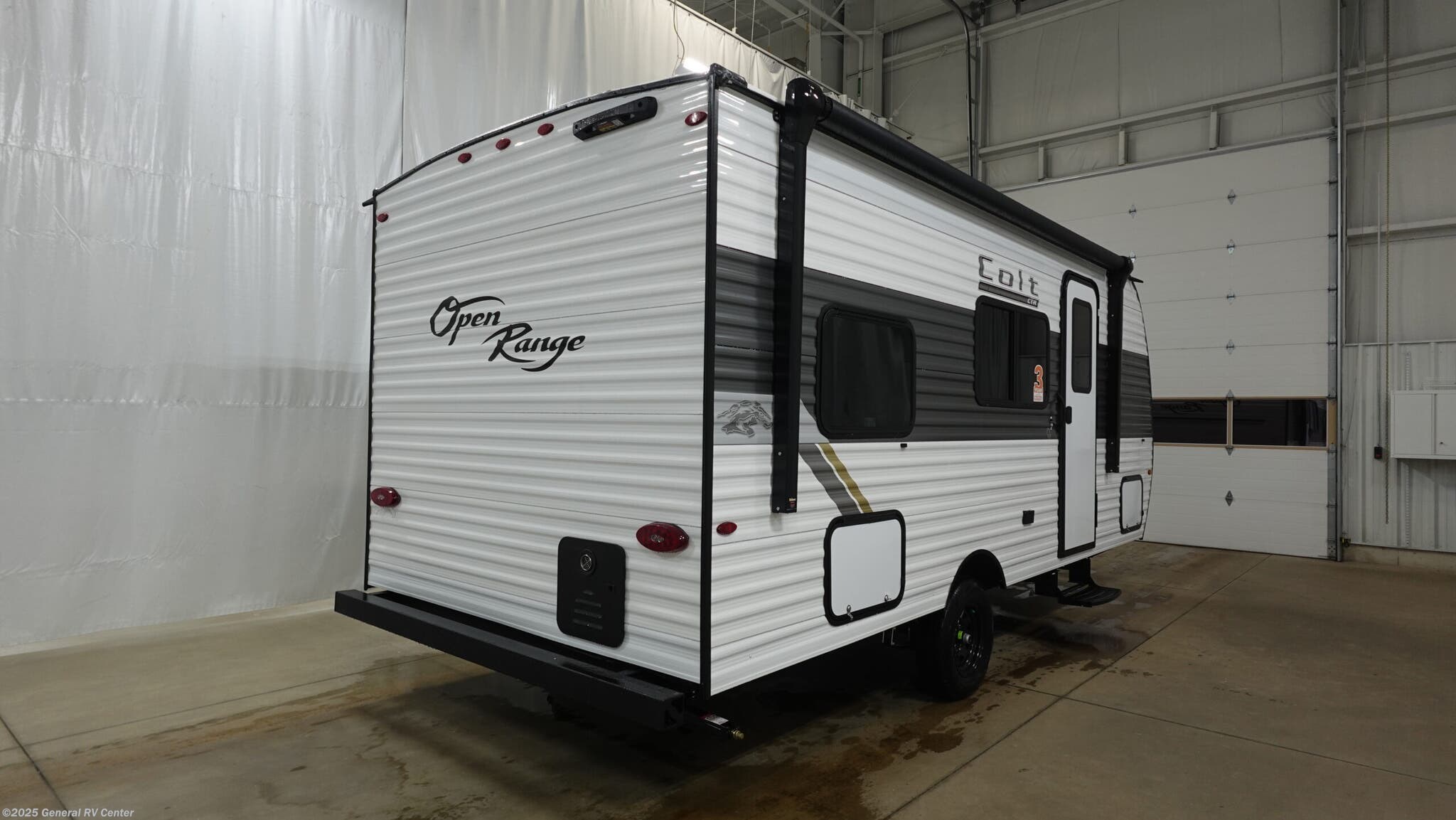 Open Range RV Colt travel trailer 17DB - CTR Edition highlights: Double-Size Bunk Beds Overhead Cabinets L-Shaped Dinette 40" Shower Front Queen Bed This easy to tow travel trailer features compact sleeping spaces thanks to the double-size bunk beds in the rear corner, and the private bath is right next to the bunks for easy nighttime use! You'll have the front queen bed to yourselves, along with a wardrobe, nightstand, and overhead shelf for your things. A two-burner cooktop and microwave oven will let you make meals each day, and there is a 12V refrigerator to keep your cold items fresh. Outside, you'll enjoy the 10' power awning for added shade, and there are two exterior storage compartments to keep fishing poles, hiking gear and more! With any Colt travel trailer by Open Range RV, you can be sure you're getting a budget-friendly unit designed to fit your lifestyle! Each one is built to last with a PVC roofing membrane and built-in A-frame, plus there are nitrogen-filled radial tires and self-adjusting electric brakes for easy towing. You will appreciate the utilities that include 30-amp service, an A/C unit, and an on-demand tankless water heater. A few interior comforts include vinyl flooring throughout, solid hardwood cabinet doors, and residential grade kitchen countertops to make your space feel more like home.