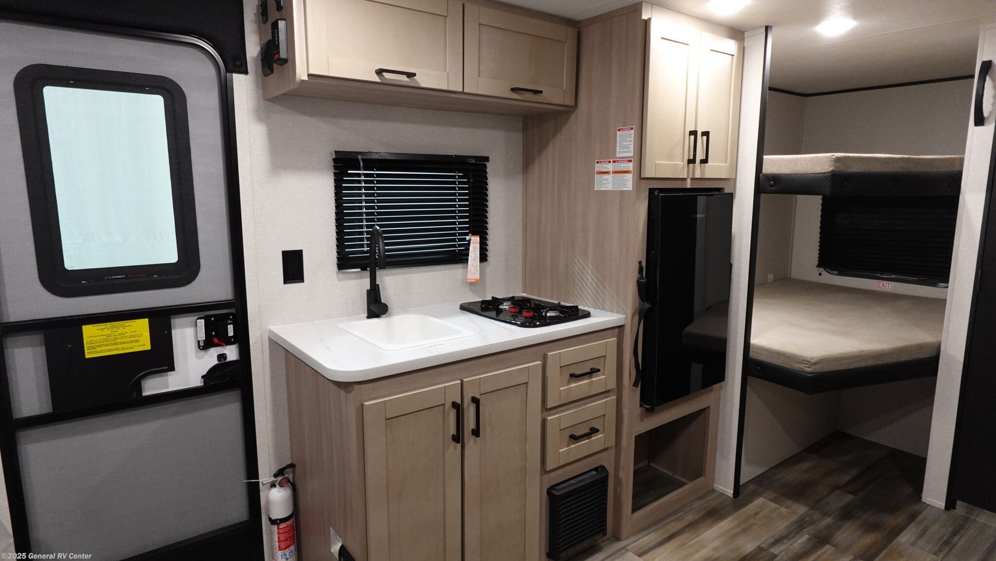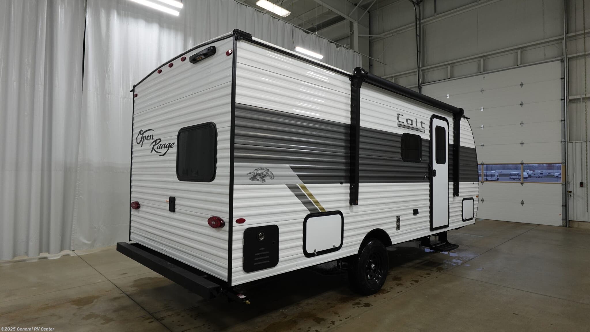 Open Range RV Colt travel trailer 17DBS - CTR Edition highlights: Double-Size Bunk Beds Overhead Cabinets Private Bath Front Queen Bed U-Shaped Dinette Slide This easy to tow travel trailer features compact sleeping spaces thanks to the double-size bunk beds in the rear corner, and the private bath is right next to the bunks for easy nighttime use! You'll have the front queen bed to yourselves, along with a wardrobe, nightstand, and overhead shelf for your things. And any other guests can convert the U-shaped dinette to sleeping space, allowing you to sleep eight total in this unit! A two-burner cooktop and microwave oven will let you make meals each day, and there is a 12V refrigerator to keep your cold items fresh. Outside, you'll enjoy the 10' power awning for added shade, and there are two exterior storage compartments to keep fishing poles, hiking gear and more! With any Colt travel trailer by Open Range RV, you can be sure you're getting a budget-friendly unit designed to fit your lifestyle! Each one is built to last with a PVC roofing membrane and built-in A-frame, plus there are nitrogen-filled radial tires and self-adjusting electric brakes for easy towing. You will appreciate the utilities that include 30-amp service, an A/C unit, and an on-demand tankless water heater. A few interior comforts include vinyl flooring throughout, solid hardwood cabinet doors, and residential grade kitchen countertops to make your space feel more like home. There are additional features available, depending on the edition you choose, along with available options to further customize your Colt travel trailer!