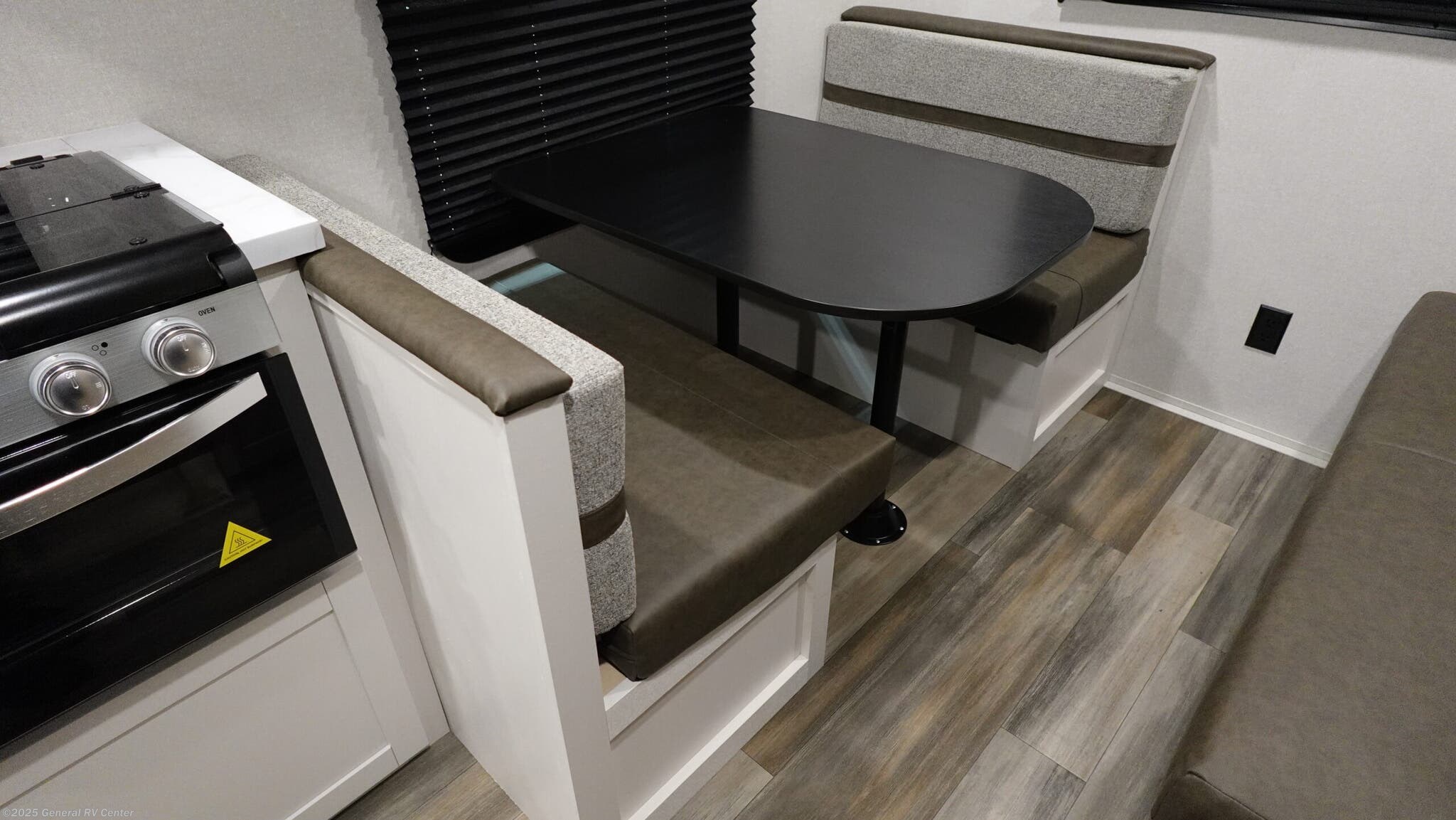 Open Range RV Colt travel trailer 21QB highlights: Front RV Queen Bed Exterior Storage Middle Full Bath 12V Refrigerator Make each camping trip count in this travel trailer that can sleep four to five each night. You'll wake up feeling refreshed on the front RV queen bed, and there are dual bedside wardrobes to keep your things organized. A middle bath includes a 40" tub/shower, which will make bath time easier if you have little ones. Once breakfast is made on the three-burner cooktop, you can dine at the booth dinette or take your plate outdoors to sit under the 16' power awning with LED lights. This unit also includes a jack-knife sofa, which can be used for sleeping space, along with the dinette! With any Colt travel trailer by Open Range RV, you can be sure you're getting a budget-friendly unit designed to fit your lifestyle! Each one is built to last with a PVC roofing membrane and built-in A-frame, plus there are nitrogen-filled radial tires and self-adjusting electric brakes for easy towing. You will appreciate the utilities that include 30-amp service, an A/C unit, and an on-demand tankless water heater. A few interior comforts include vinyl flooring throughout, solid hardwood cabinet doors, and residential grade kitchen countertops to make your space feel more like home.