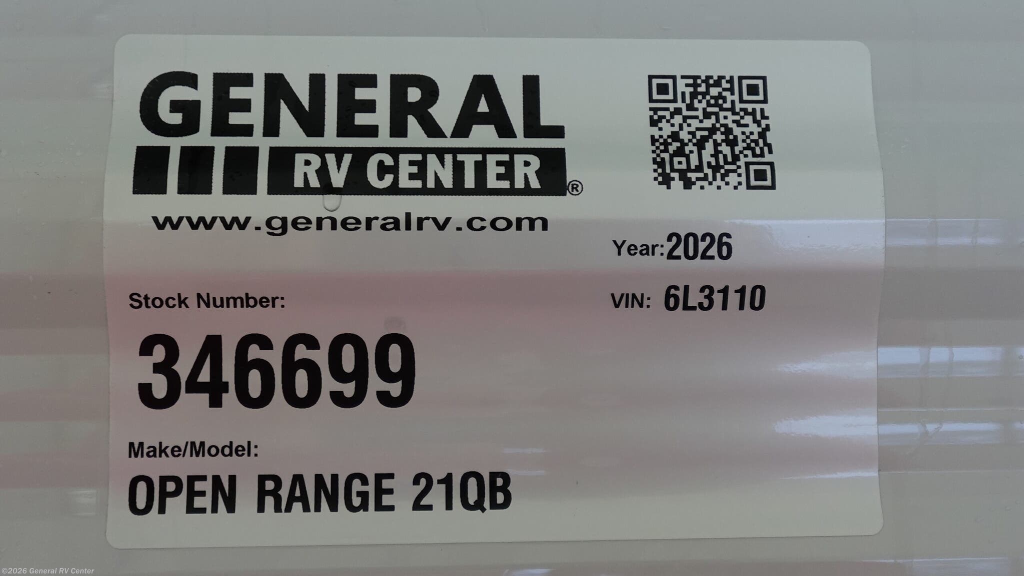 Request More Info on this 2026 Open Range 21QB Offered for sale by General RV Center