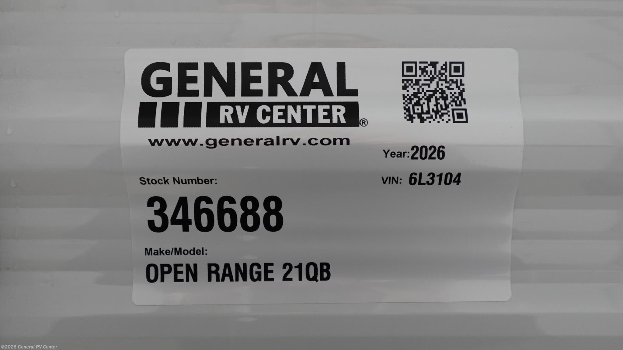 Request More Info on this 2026 Open Range 21QB Offered for sale by General RV Center