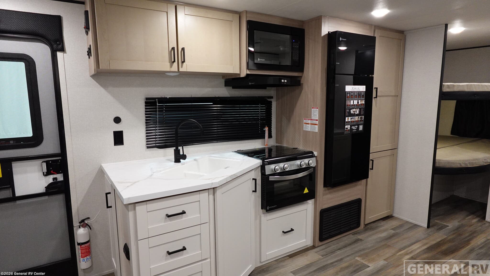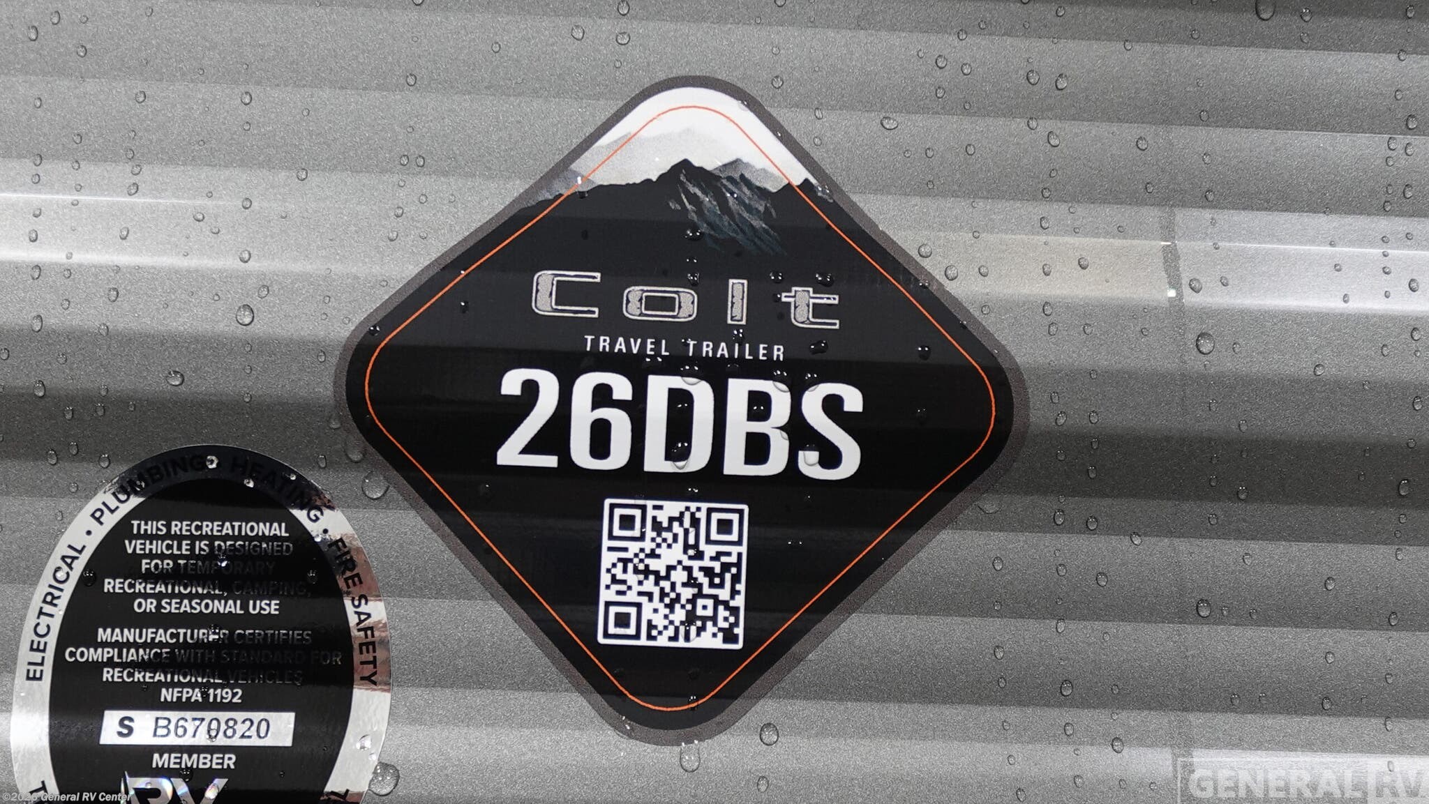 **Open Range RV Colt travel trailer 26DBS highlights:** * Front Private Bedroom * Outside Kitchen * Large Slide Out * Kitchen Pantry This travel trailer with double-size bunks is spacious and cozy! Once you've unloaded the exterior storage, your crew can put out the 16' power awning with LED lights, then start lunch on the outside kitchen. If the weather isn't cooperating, there is a three-burner cooktop and microwave oven inside, plus comfortable seating on the jack-knife sofa and booth dinette. You're sure to appreciate the front private bedroom with an RV queen bed, dual wardrobes, plus an overhead shelf for books, and the rear corner full bath will let everyone freshen up each day! With any Colt travel trailer by Open Range RV, you can be sure you're getting a budget-friendly unit designed to fit your lifestyle! Each one is built to last with a PVC roofing membrane and built-in A-frame, plus there are nitrogen-filled radial tires and self-adjusting electric brakes for easy towing. You will appreciate the utilities that include 30-amp service, an A/C unit, and an on-demand tankless water heater. A few interior comforts include vinyl flooring throughout, solid hardwood cabinet doors, and residential grade kitchen countertops to make your space feel more like home.