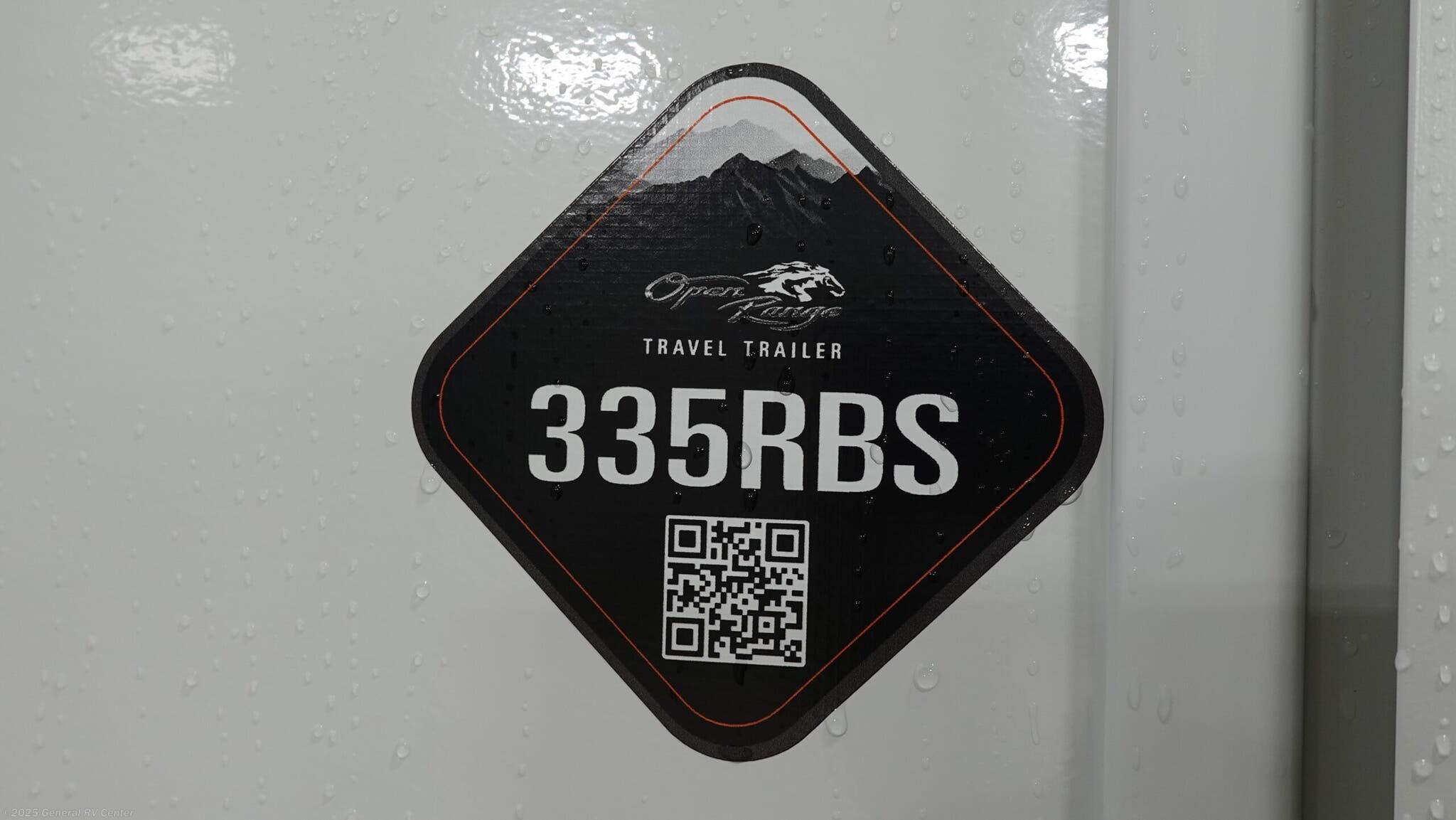 Open Range RV Open Range travel trailer 335RBS highlights: King Bed U-Dinette Kitchen Island Two Awnings Outside Kitchen This Open Range travel trailer offers fantastic flexibility! The private rear bedroom with a king bed is a lovely retreat, while your guests or children enjoy the middle room with a bunk and desk below. The common living area is an open space with a mega lounge with two pedestal tables, plus a U-dinette for even more seating! The frameless windows provide the perfect view! A full bath is easily accessible, and the kitchen offers a full suite of appliances plus an island for convenient work space. Outside is a second kitchen with fridge and pull-out griddle for even more fun! With any Open Range RV Open Range travel trailer, the 100" wide body frame and the ACCU-SLIDE slide system with 42" deep 4-corner compression offer more interior space. Inside, you will also enjoy residential vinyl flooring, raised panel hardwood doors, and two air conditioners with quiet residential return air. The exterior equipment includes Equa-Flex axle suspension, self-adjusting electric brakes, and the Norco 5.1 stabilizer system with BAL lock arms. You will also enjoy the Four Season package that offers ducted heat to underbelly with cold air return, an enclosed exterior docking station, a heated and enclosed underbelly, and a high-performance furnace to mention a few highlights.