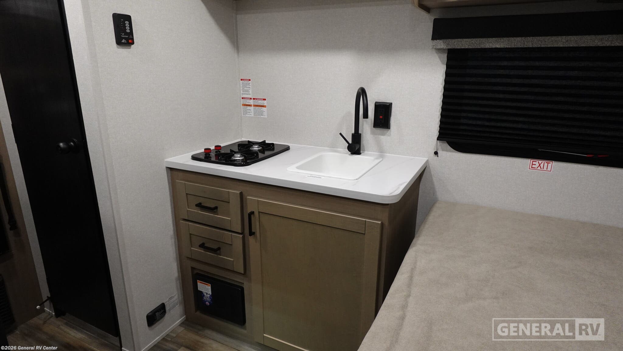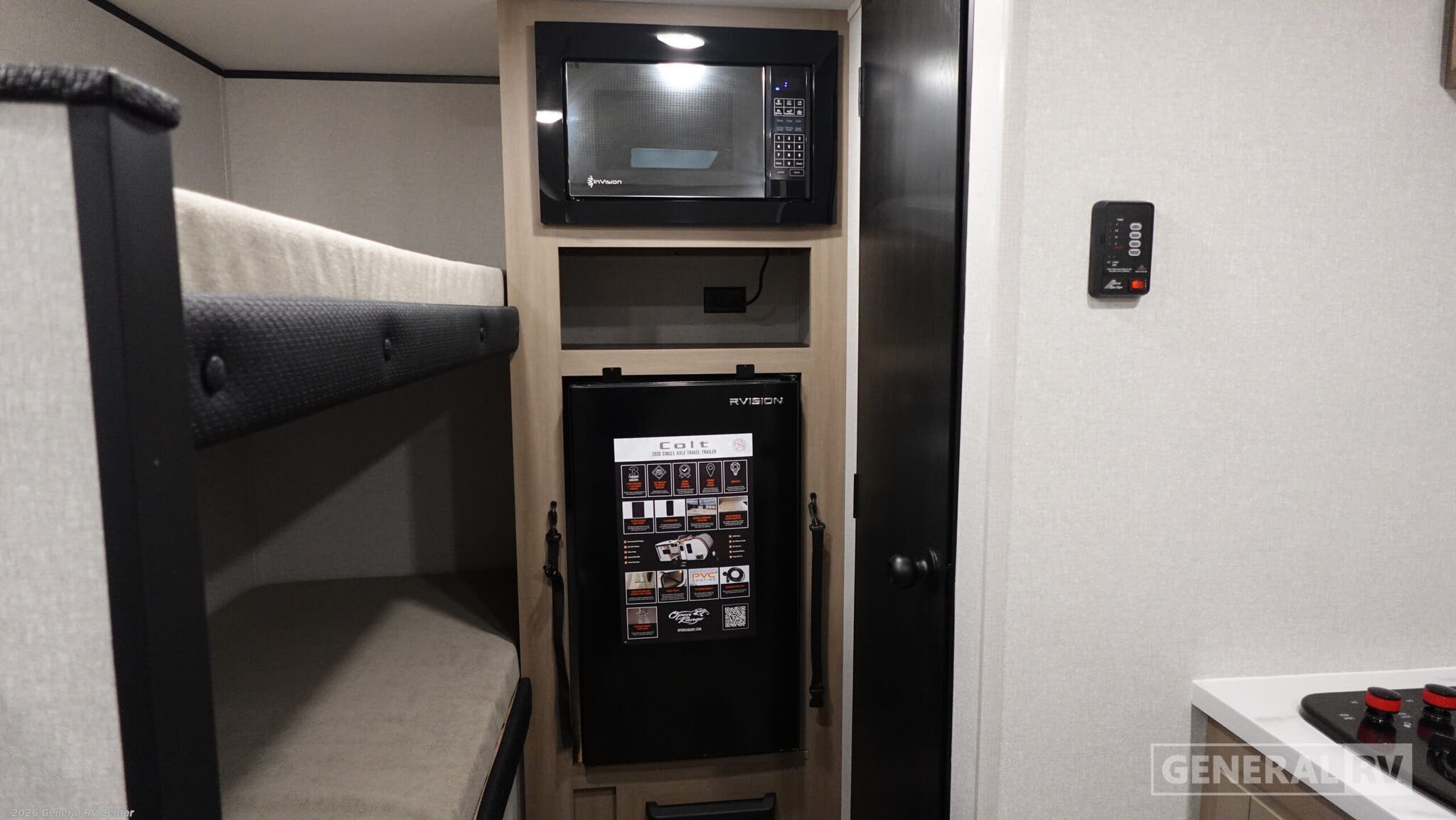 **Open Range RV Colt travel trailer 13BH - CTR Edition highlights:** - 54" x 74" Bed - Two-Burner Cooktop - Sleeps Four - Exterior Storage This lightweight travel trailer includes everything you need for comfortable camping trips at the lake. You can make your meals on the two-burner cooktop or in the microwave oven, and a 12V refrigerator will keep leftovers fresh. A front bed provides a great night's rest, and there are 30" x 73" bunk beds for your guests or little ones. And a private bath with a shower and toilet will let you easily freshen up without having to use the camp's facilities! With any Colt travel trailer by Open Range RV, you can be sure you're getting a budget-friendly unit designed to fit your lifestyle! Each one is built to last with a PVC roofing membrane and built-in A-frame, plus there are nitrogen-filled radial tires and self-adjusting electric brakes for easy towing. You will appreciate the utilities that include 30-amp service, an A/C unit, and an on-demand tankless water heater. A few interior comforts include vinyl flooring throughout, solid hardwood cabinet doors, and residential grade kitchen countertops to make your space feel more like home.