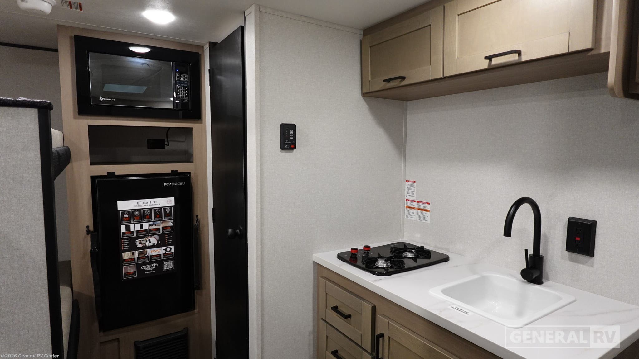 **Open Range RV Colt travel trailer 13BH - CTR Edition highlights:** - 54" x 74" Bed - Two-Burner Cooktop - Sleeps Four - Exterior Storage This lightweight travel trailer includes everything you need for comfortable camping trips at the lake. You can make your meals on the two-burner cooktop or in the microwave oven, and a 12V refrigerator will keep leftovers fresh. A front bed provides a great night's rest, and there are 30" x 73" bunk beds for your guests or little ones. And a private bath with a shower and toilet will let you easily freshen up without having to use the camp's facilities! With any Colt travel trailer by Open Range RV, you can be sure you're getting a budget-friendly unit designed to fit your lifestyle! Each one is built to last with a PVC roofing membrane and built-in A-frame, plus there are nitrogen-filled radial tires and self-adjusting electric brakes for easy towing. You will appreciate the utilities that include 30-amp service, an A/C unit, and an on-demand tankless water heater. A few interior comforts include vinyl flooring throughout, solid hardwood cabinet doors, and residential grade kitchen countertops to make your space feel more like home.