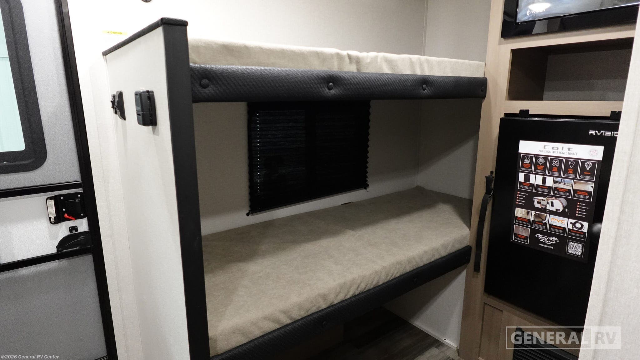 **Open Range RV Colt travel trailer 13BH - CTR Edition highlights:** - 54" x 74" Bed - Two-Burner Cooktop - Sleeps Four - Exterior Storage This lightweight travel trailer includes everything you need for comfortable camping trips at the lake. You can make your meals on the two-burner cooktop or in the microwave oven, and a 12V refrigerator will keep leftovers fresh. A front bed provides a great night's rest, and there are 30" x 73" bunk beds for your guests or little ones. And a private bath with a shower and toilet will let you easily freshen up without having to use the camp's facilities! With any Colt travel trailer by Open Range RV, you can be sure you're getting a budget-friendly unit designed to fit your lifestyle! Each one is built to last with a PVC roofing membrane and built-in A-frame, plus there are nitrogen-filled radial tires and self-adjusting electric brakes for easy towing. You will appreciate the utilities that include 30-amp service, an A/C unit, and an on-demand tankless water heater. A few interior comforts include vinyl flooring throughout, solid hardwood cabinet doors, and residential grade kitchen countertops to make your space feel more like home.