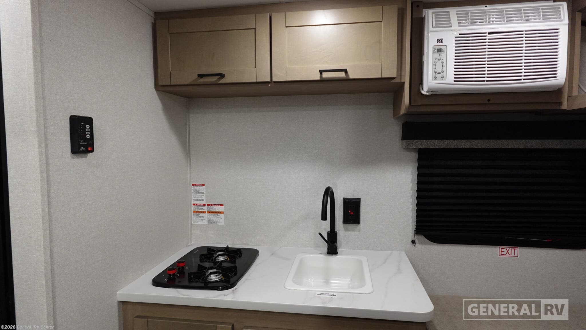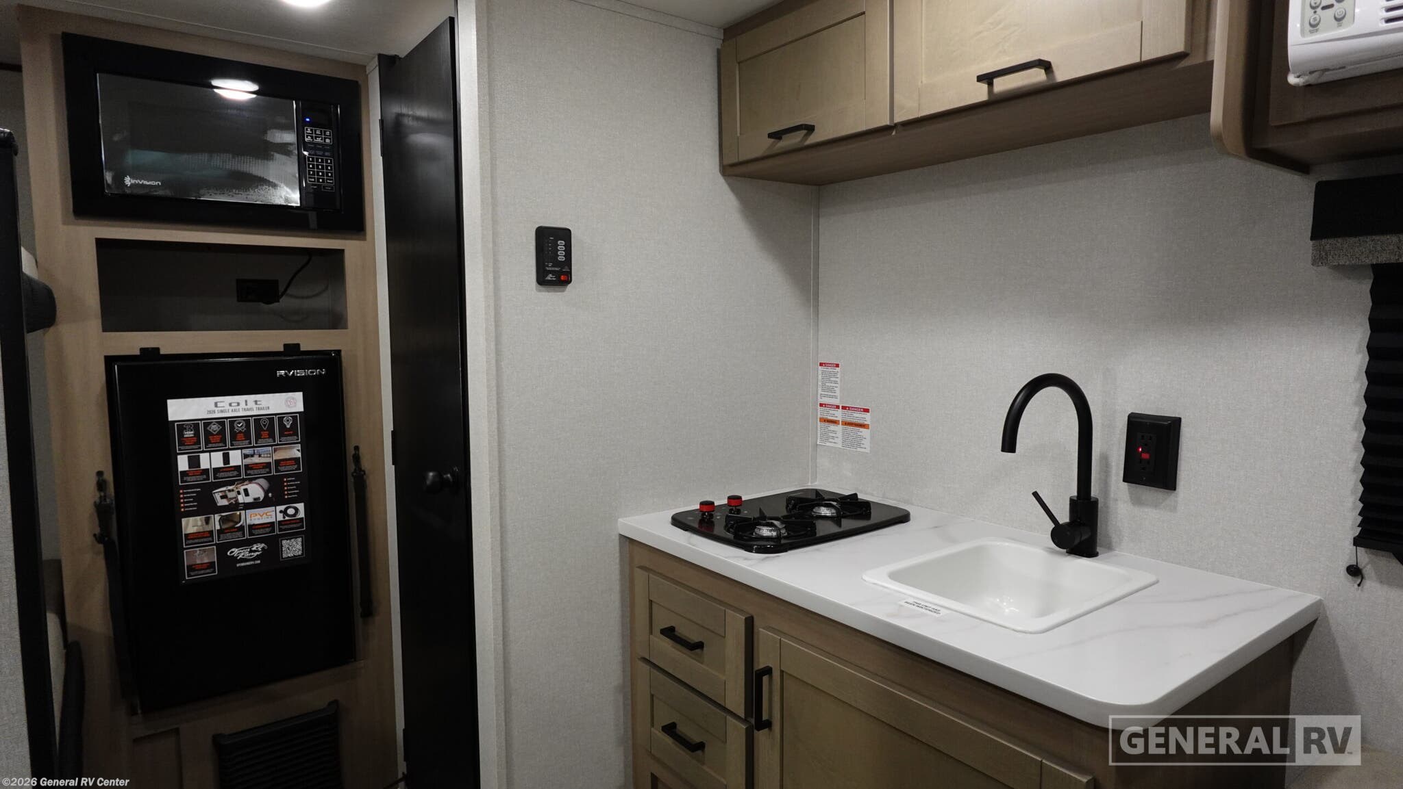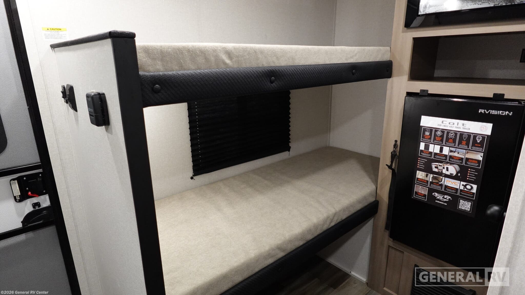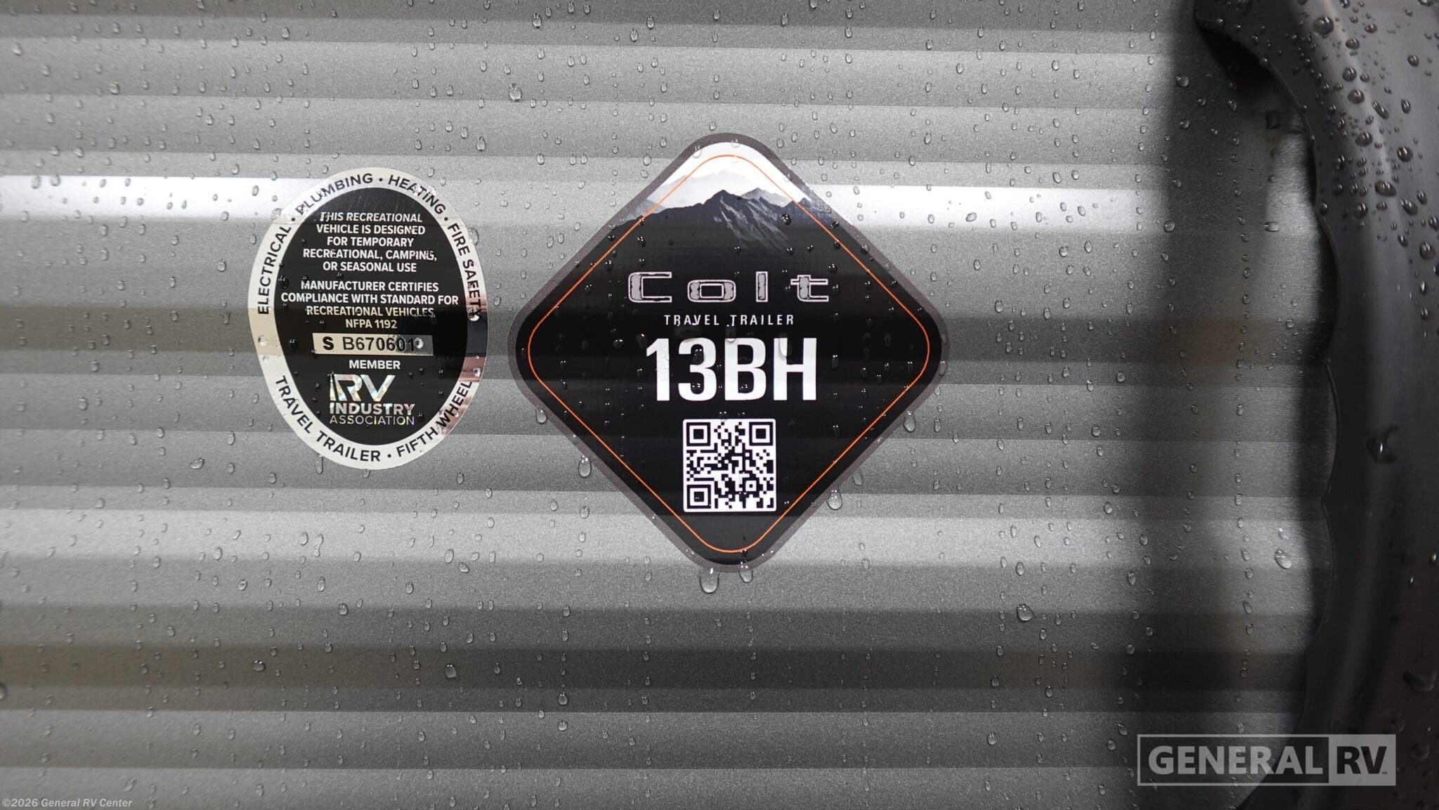 **Open Range RV Colt travel trailer 13BH - CTR Edition highlights:** - 54" x 74" Bed - Two-Burner Cooktop - Sleeps Four - Exterior Storage This lightweight travel trailer includes everything you need for comfortable camping trips at the lake. You can make your meals on the two-burner cooktop or in the microwave oven, and a 12V refrigerator will keep leftovers fresh. A front bed provides a great night's rest, and there are 30" x 73" bunk beds for your guests or little ones. And a private bath with a shower and toilet will let you easily freshen up without having to use the camp's facilities! With any Colt travel trailer by Open Range RV, you can be sure you're getting a budget-friendly unit designed to fit your lifestyle! Each one is built to last with a PVC roofing membrane and built-in A-frame, plus there are nitrogen-filled radial tires and self-adjusting electric brakes for easy towing. You will appreciate the utilities that include 30-amp service, an A/C unit, and an on-demand tankless water heater. A few interior comforts include vinyl flooring throughout, solid hardwood cabinet doors, and residential grade kitchen countertops to make your space feel more like home.