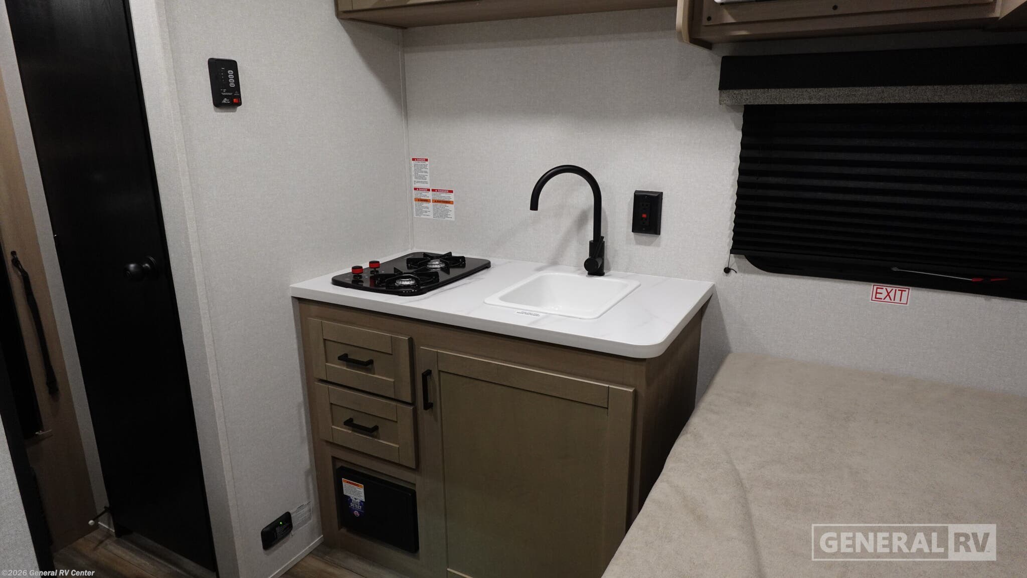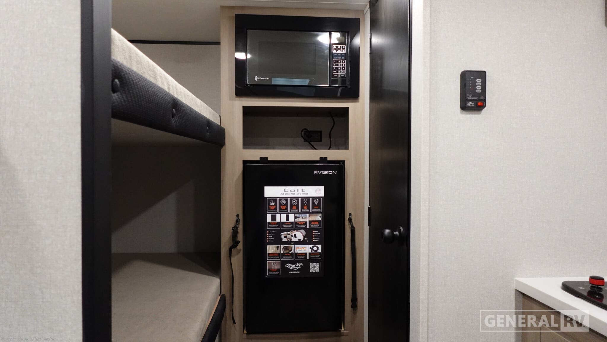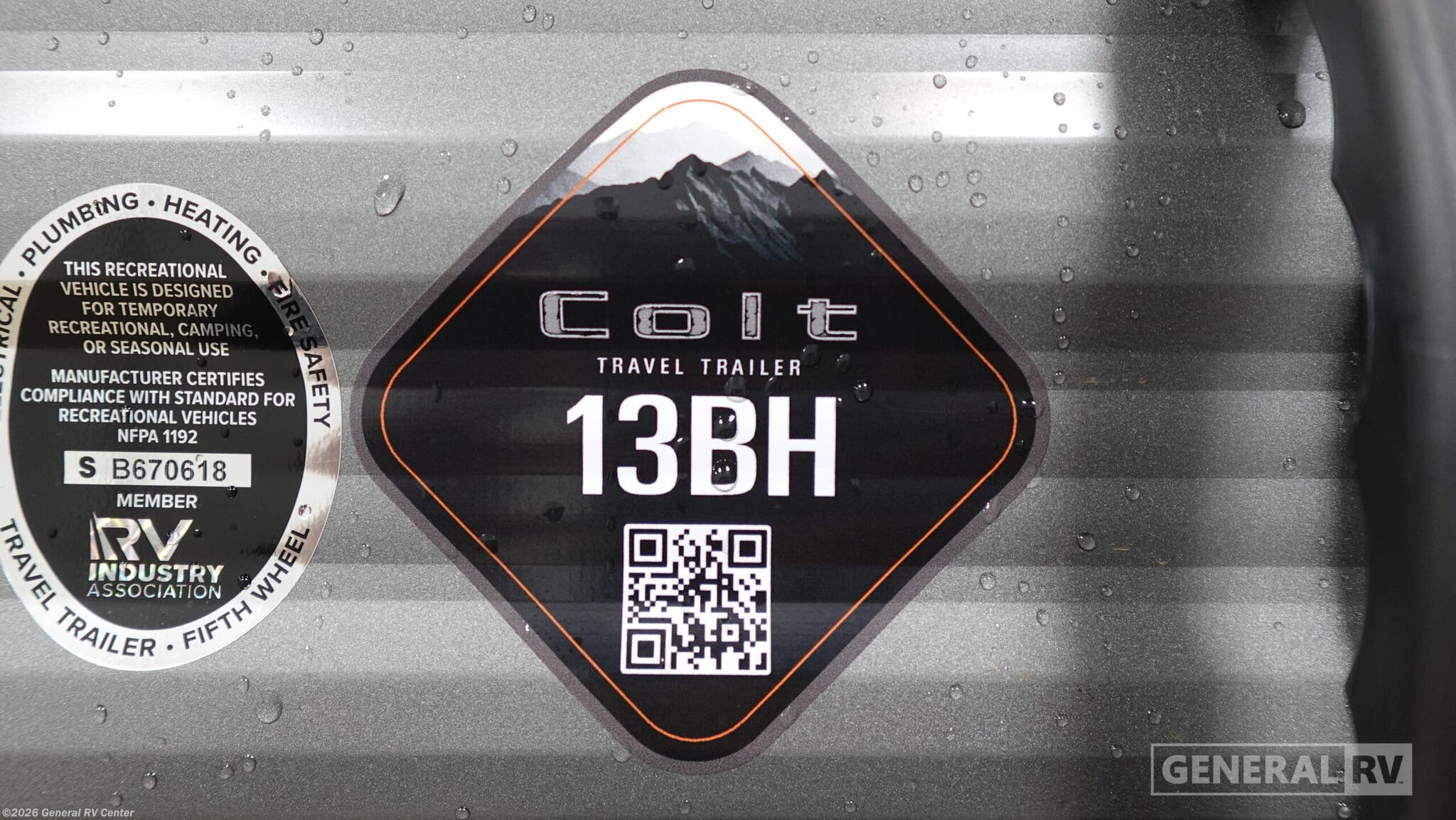 **Open Range RV Colt travel trailer 13BH - CTR Edition highlights:** - 54" x 74" Bed - Two-Burner Cooktop - Sleeps Four - Exterior Storage This lightweight travel trailer includes everything you need for comfortable camping trips at the lake. You can make your meals on the two-burner cooktop or in the microwave oven, and a 12V refrigerator will keep leftovers fresh. A front bed provides a great night's rest, and there are 30" x 73" bunk beds for your guests or little ones. And a private bath with a shower and toilet will let you easily freshen up without having to use the camp's facilities! With any Colt travel trailer by Open Range RV, you can be sure you're getting a budget-friendly unit designed to fit your lifestyle! Each one is built to last with a PVC roofing membrane and built-in A-frame, plus there are nitrogen-filled radial tires and self-adjusting electric brakes for easy towing. You will appreciate the utilities that include 30-amp service, an A/C unit, and an on-demand tankless water heater. A few interior comforts include vinyl flooring throughout, solid hardwood cabinet doors, and residential grade kitchen countertops to make your space feel more like home.