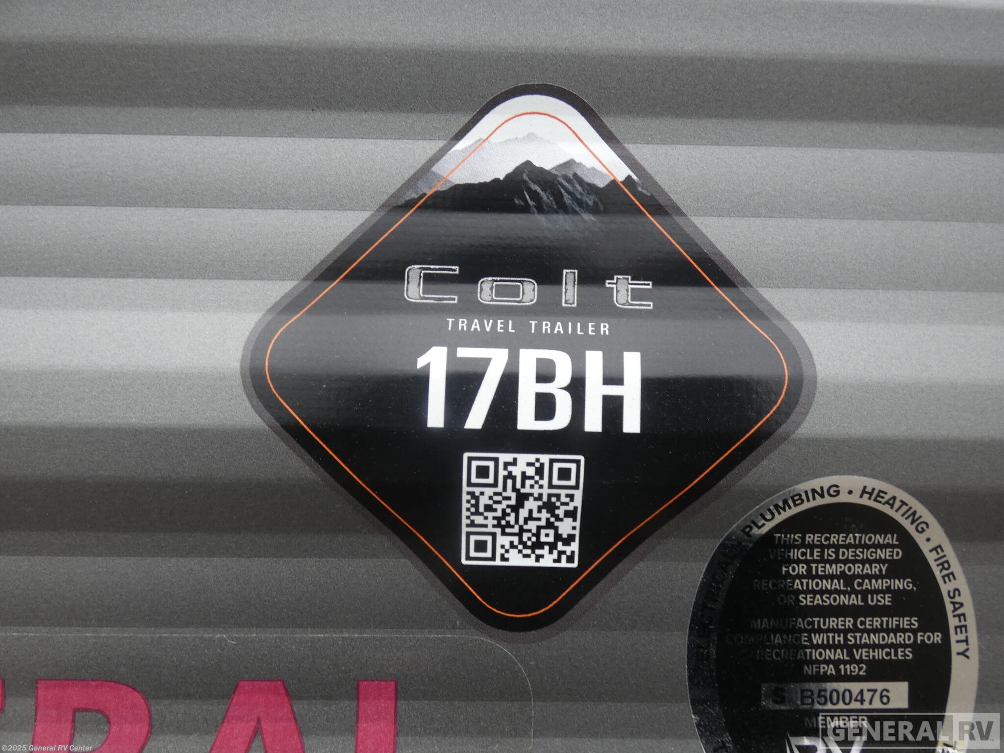 Open Range RV Colt travel trailer 17BH - CTR Edition highlights: Bunk Beds Overhead Cabinets Exterior Storage 36" Tub/Shower Front Queen Bed This easy to tow travel trailer features compact sleeping spaces thanks to the bunk beds in the rear corner, and the private bath is right next to the bunks for easy nighttime use! You'll have the front queen bed to yourselves, while another guest or two little ones convert the booth dinette to sleeping space. A two-burner cooktop and microwave oven will let you make meals each day, and there is a 12V refrigerator to keep your cold items fresh. Outside, you'll enjoy the 10' power awning for added shade, and there is exterior storage to keep fishing poles, hiking gear and more! With any Colt travel trailer by Open Range RV, you can be sure you're getting a budget-friendly unit designed to fit your lifestyle! Each one is built to last with a PVC roofing membrane and built-in A-frame, plus there are nitrogen-filled radial tires and self-adjusting electric brakes for easy towing. You will appreciate the utilities that include 30-amp service, an A/C unit, and an on-demand tankless water heater. A few interior comforts include vinyl flooring throughout, solid hardwood cabinet doors, and residential grade kitchen countertops to make your space feel more like home.