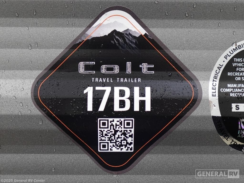 Open Range RV Colt travel trailer 17BH - CTR Edition highlights: Bunk Beds Overhead Cabinets Exterior Storage 36" Tub/Shower Front Queen Bed This easy to tow travel trailer features compact sleeping spaces thanks to the bunk beds in the rear corner, and the private bath is right next to the bunks for easy nighttime use! You'll have the front queen bed to yourselves, while another guest or two little ones convert the booth dinette to sleeping space. A two-burner cooktop and microwave oven will let you make meals each day, and there is a 12V refrigerator to keep your cold items fresh. Outside, you'll enjoy the 10' power awning for added shade, and there is exterior storage to keep fishing poles, hiking gear and more! With any Colt travel trailer by Open Range RV, you can be sure you're getting a budget-friendly unit designed to fit your lifestyle! Each one is built to last with a PVC roofing membrane and built-in A-frame, plus there are nitrogen-filled radial tires and self-adjusting electric brakes for easy towing. You will appreciate the utilities that include 30-amp service, an A/C unit, and an on-demand tankless water heater. A few interior comforts include vinyl flooring throughout, solid hardwood cabinet doors, and residential grade kitchen countertops to make your space feel more like home.
