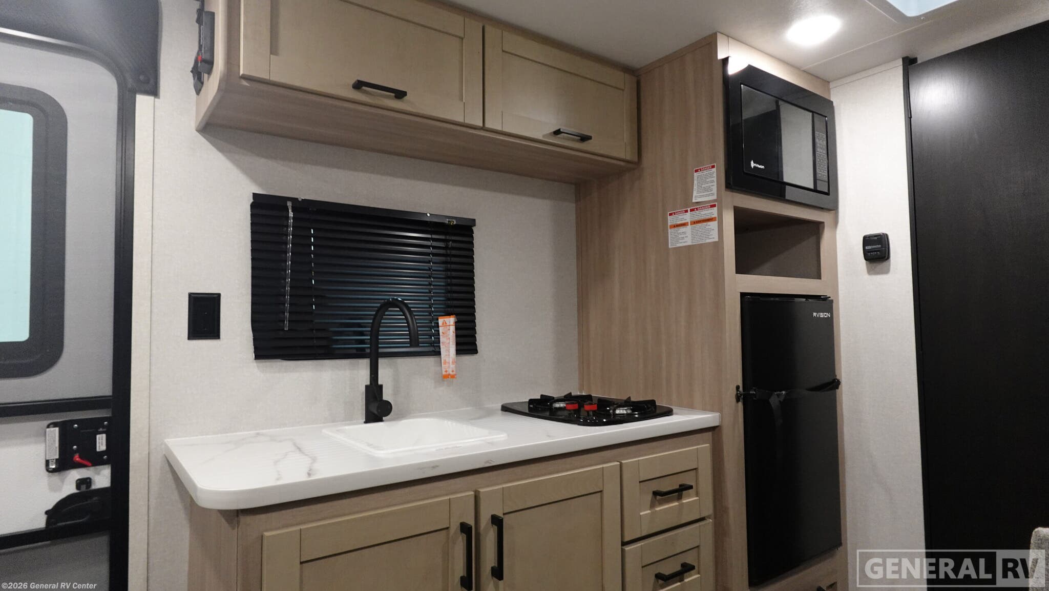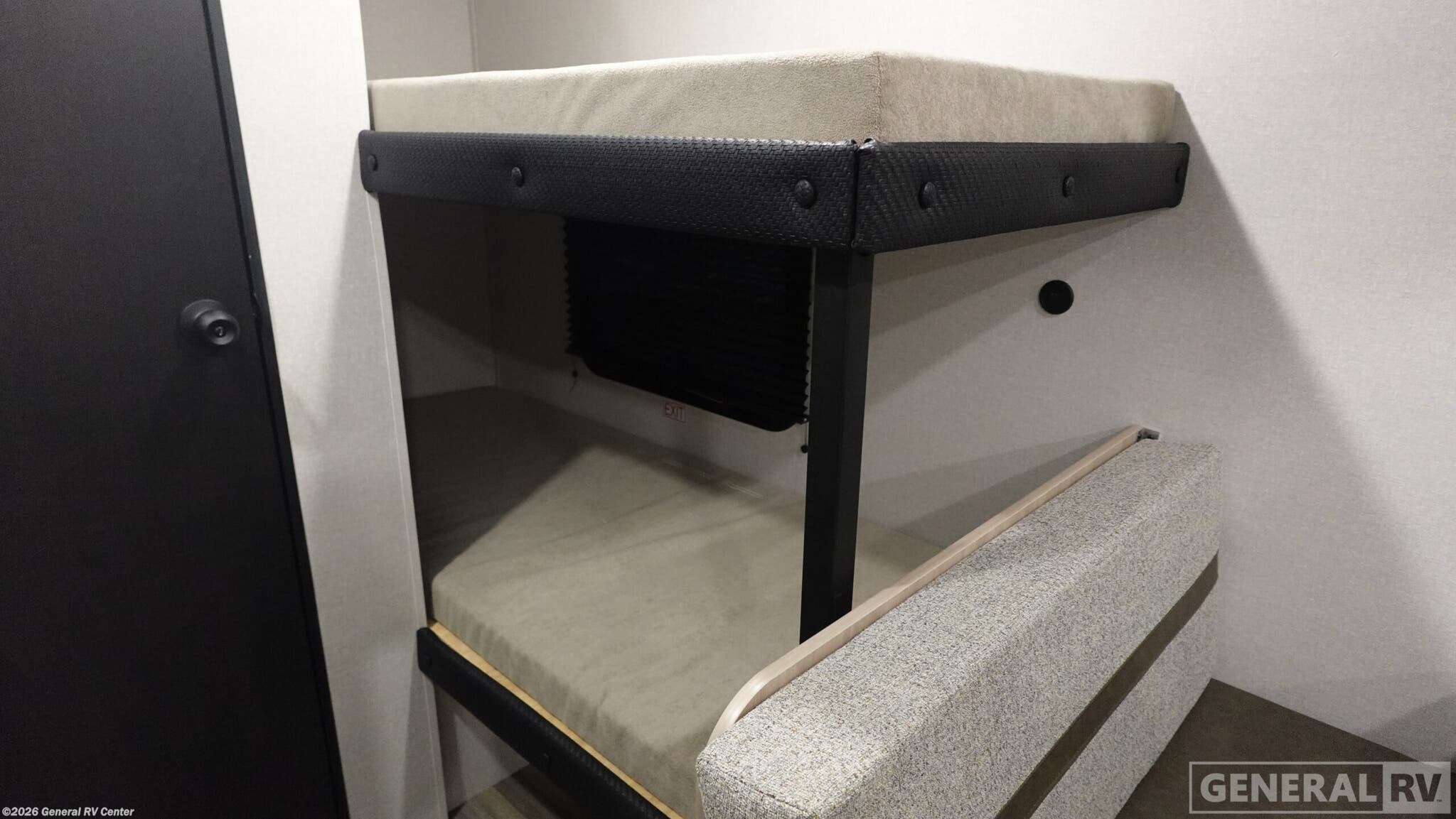 This easy to tow travel trailer features compact sleeping spaces thanks to the bunk beds in the rear corner, and the private bath is right next to the bunks for easy nighttime use! You'll have the front queen bed to yourselves, while another guest or two little ones convert the booth dinette to sleeping space. A two-burner cooktop and microwave oven will let you make meals each day, and there is a 12V refrigerator to keep your cold items fresh. Outside, you'll enjoy the 10' power awning for added shade, and there is exterior storage to keep fishing poles, hiking gear and more! With any Colt travel trailer by Open Range RV, you can be sure you're getting a budget-friendly unit designed to fit your lifestyle! Each one is built to last with a PVC roofing membrane and built-in A-frame, plus there are nitrogen-filled radial tires and self-adjusting electric brakes for easy towing. You will appreciate the utilities that include 30-amp service, an A/C unit, and an on-demand tankless water heater. A few interior comforts include vinyl flooring throughout, solid hardwood cabinet doors, and residential grade kitchen countertops to make your space feel more like home. There are additional features available, depending on the edition you choose, along with available options to further customize your Colt travel trailer!