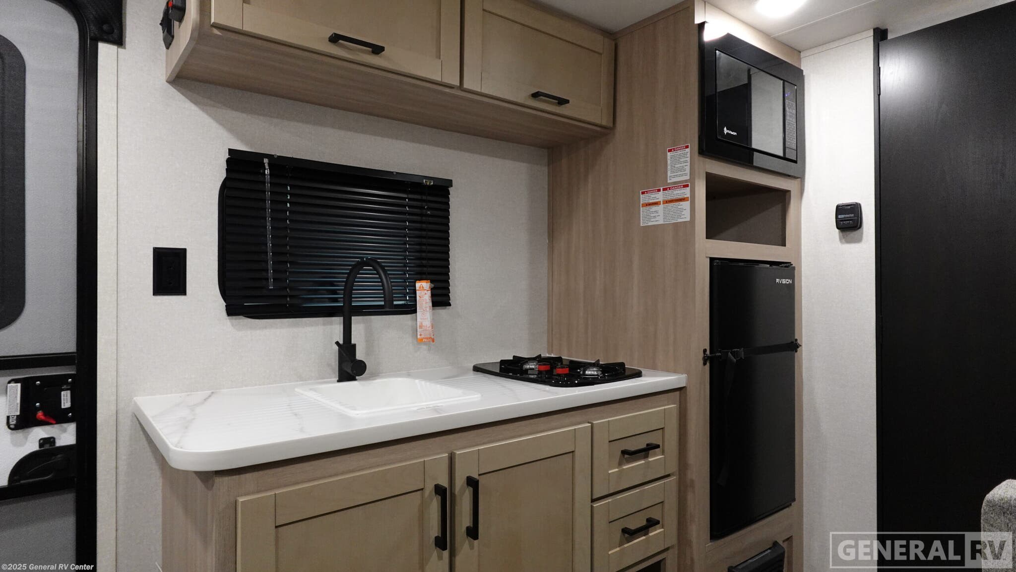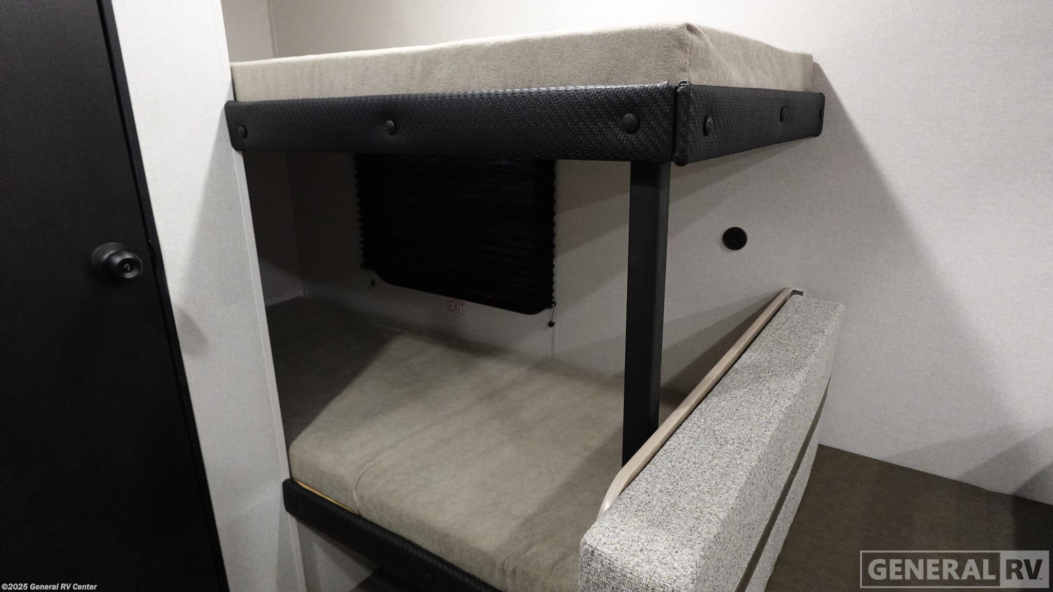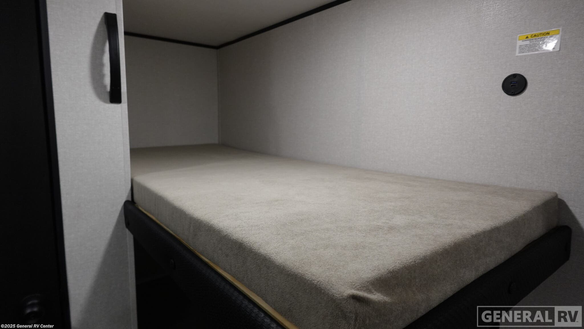 This easy to tow travel trailer features compact sleeping spaces thanks to the bunk beds in the rear corner, and the private bath is right next to the bunks for easy nighttime use! You'll have the front queen bed to yourselves, while another guest or two little ones convert the booth dinette to sleeping space. A two-burner cooktop and microwave oven will let you make meals each day, and there is a 12V refrigerator to keep your cold items fresh. Outside, you'll enjoy the 10' power awning for added shade, and there is exterior storage to keep fishing poles, hiking gear and more! With any Colt travel trailer by Open Range RV, you can be sure you're getting a budget-friendly unit designed to fit your lifestyle! Each one is built to last with a PVC roofing membrane and built-in A-frame, plus there are nitrogen-filled radial tires and self-adjusting electric brakes for easy towing. You will appreciate the utilities that include 30-amp service, an A/C unit, and an on-demand tankless water heater. A few interior comforts include vinyl flooring throughout, solid hardwood cabinet doors, and residential grade kitchen countertops to make your space feel more like home.
