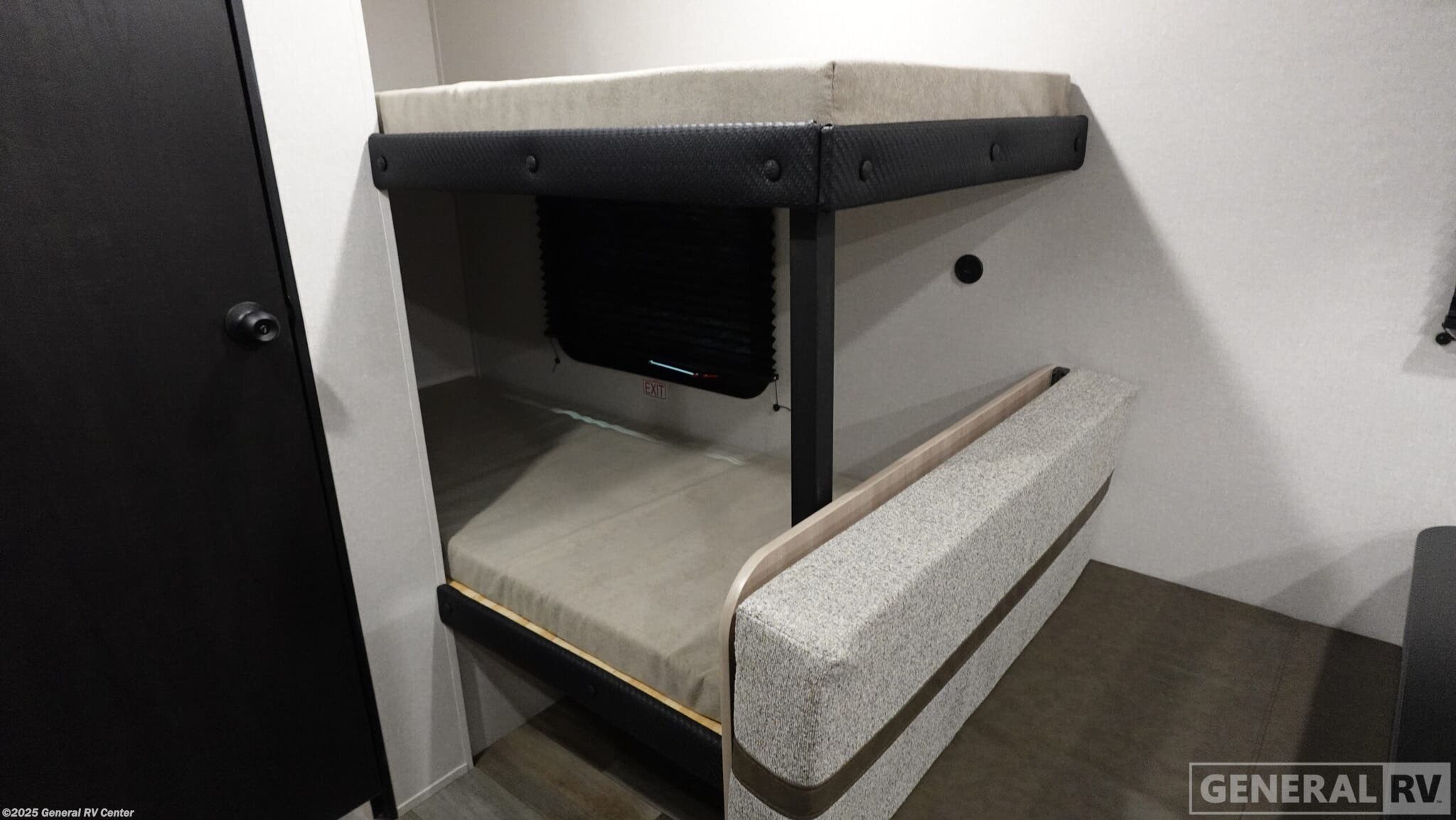 This easy to tow travel trailer features compact sleeping spaces thanks to the bunk beds in the rear corner, and the private bath is right next to the bunks for easy nighttime use! You'll have the front queen bed to yourselves, while another guest or two little ones convert the booth dinette to sleeping space. A two-burner cooktop and microwave oven will let you make meals each day, and there is a 12V refrigerator to keep your cold items fresh. Outside, you'll enjoy the 10' power awning for added shade, and there is exterior storage to keep fishing poles, hiking gear and more! With any Colt travel trailer by Open Range RV, you can be sure you're getting a budget-friendly unit designed to fit your lifestyle! Each one is built to last with a PVC roofing membrane and built-in A-frame, plus there are nitrogen-filled radial tires and self-adjusting electric brakes for easy towing. You will appreciate the utilities that include 30-amp service, an A/C unit, and an on-demand tankless water heater. A few interior comforts include vinyl flooring throughout, solid hardwood cabinet doors, and residential grade kitchen countertops to make your space feel more like home. There are additional features available, depending on the edition you choose, along with available options to further customize your Colt travel trailer!