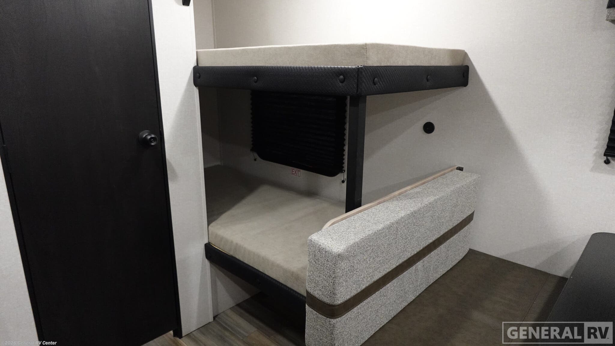 This easy to tow travel trailer features compact sleeping spaces thanks to the bunk beds in the rear corner, and the private bath is right next to the bunks for easy nighttime use! You'll have the front queen bed to yourselves, while another guest or two little ones convert the booth dinette to sleeping space. A two-burner cooktop and microwave oven will let you make meals each day, and there is a 12V refrigerator to keep your cold items fresh. Outside, you'll enjoy the 10' power awning for added shade, and there is exterior storage to keep fishing poles, hiking gear and more! With any Colt travel trailer by Open Range RV, you can be sure you're getting a budget-friendly unit designed to fit your lifestyle! Each one is built to last with a PVC roofing membrane and built-in A-frame, plus there are nitrogen-filled radial tires and self-adjusting electric brakes for easy towing. You will appreciate the utilities that include 30-amp service, an A/C unit, and an on-demand tankless water heater. A few interior comforts include vinyl flooring throughout, solid hardwood cabinet doors, and residential grade kitchen countertops to make your space feel more like home. There are additional features available, depending on the edition you choose, along with available options to further customize your Colt travel trailer!