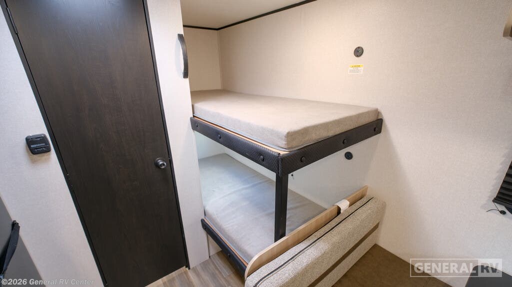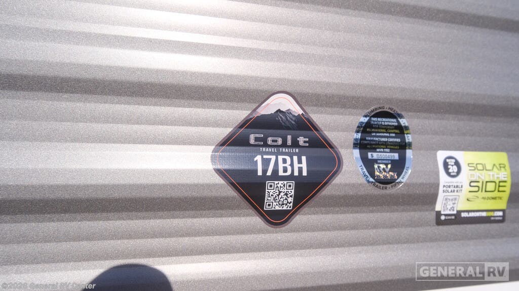 Open Range RV Colt travel trailer 17BH - CTR Edition highlights: Bunk Beds Overhead Cabinets Exterior Storage 36" Tub/Shower Front Queen Bed This easy to tow travel trailer features compact sleeping spaces thanks to the bunk beds in the rear corner, and the private bath is right next to the bunks for easy nighttime use! You'll have the front queen bed to yourselves, while another guest or two little ones convert the booth dinette to sleeping space. A two-burner cooktop and microwave oven will let you make meals each day, and there is a 12V refrigerator to keep your cold items fresh. Outside, you'll enjoy the 10' power awning for added shade, and there is exterior storage to keep fishing poles, hiking gear and more! With any Colt travel trailer by Open Range RV, you can be sure you're getting a budget-friendly unit designed to fit your lifestyle! Each one is built to last with a PVC roofing membrane and built-in A-frame, plus there are nitrogen-filled radial tires and self-adjusting electric brakes for easy towing. You will appreciate the utilities that include 30-amp service, an A/C unit, and an on-demand tankless water heater. A few interior comforts include vinyl flooring throughout, solid hardwood cabinet doors, and residential grade kitchen countertops to make your space feel more like home.