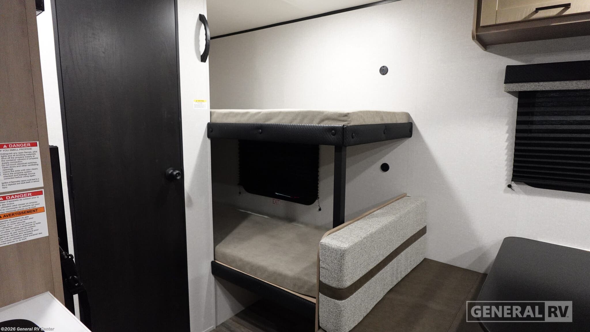 **Open Range RV Colt travel trailer 17BH - CTR Edition highlights:** * Bunk Beds * Overhead Cabinets * Exterior Storage * 36" Tub/Shower * Front Queen Bed This easy to tow travel trailer features compact sleeping spaces thanks to the bunk beds in the rear corner, and the private bath is right next to the bunks for easy nighttime use! You'll have the front queen bed to yourselves, while another guest or two little ones convert the booth dinette to sleeping space. A two-burner cooktop and microwave oven will let you make meals each day, and there is a 12V refrigerator to keep your cold items fresh. Outside, you'll enjoy the 10' power awning for added shade, and there is exterior storage to keep fishing poles, hiking gear and more! With any Colt travel trailer by Open Range RV, you can be sure you're getting a budget-friendly unit designed to fit your lifestyle! Each one is built to last with a PVC roofing membrane and built-in A-frame, plus there are nitrogen-filled radial tires and self-adjusting electric brakes for easy towing. You will appreciate the utilities that include 30-amp service, an A/C unit, and an on-demand tankless water heater. A few interior comforts include vinyl flooring throughout, solid hardwood cabinet doors, and residential grade kitchen countertops to make your space feel more like home. There are additional features available, depending on the edition you choose, along with available options to further customize your Colt travel trailer!