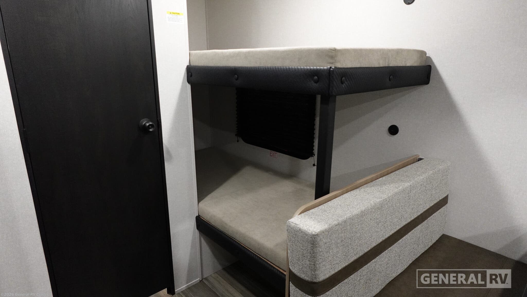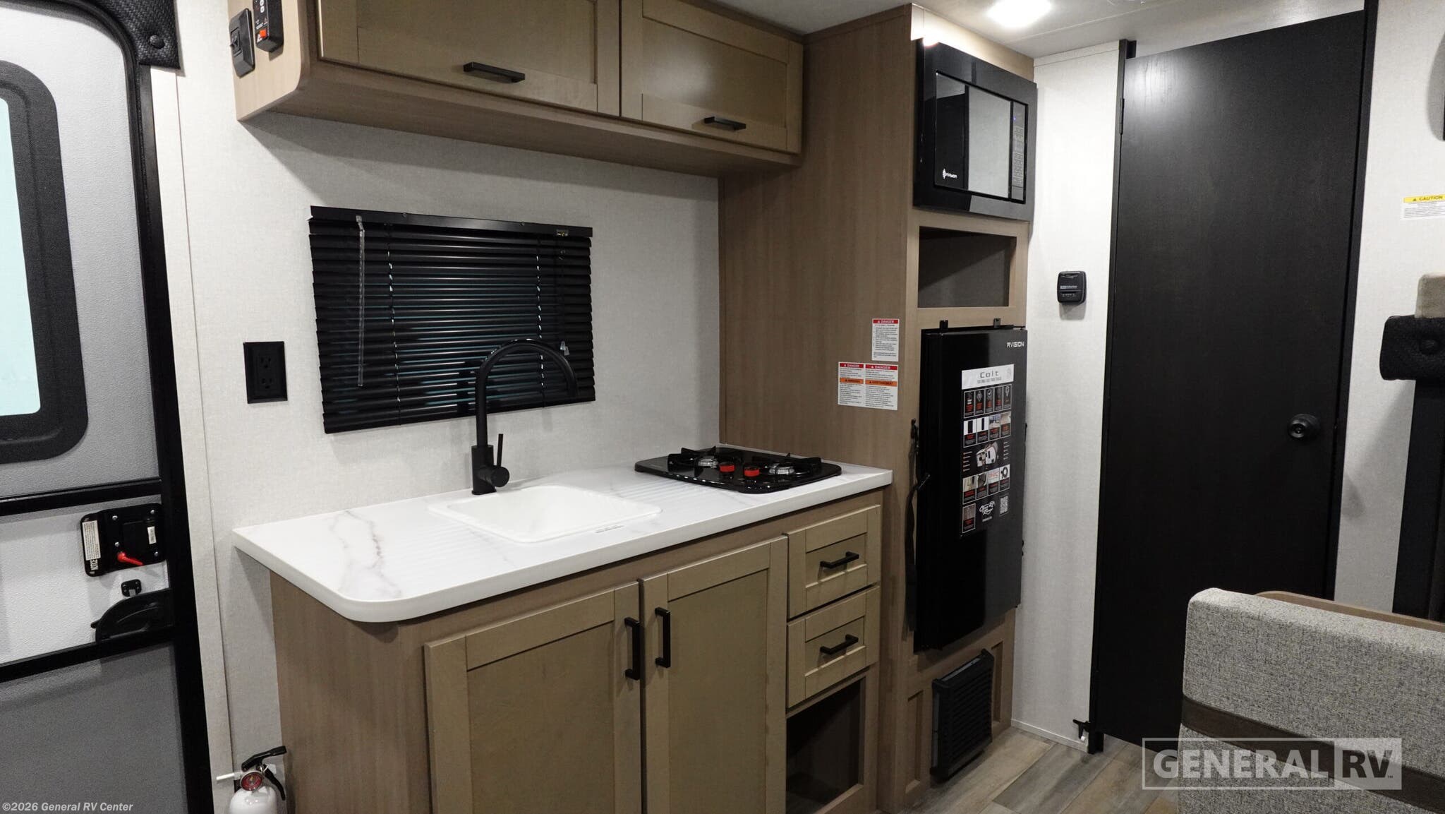 Open Range RV Colt travel trailer 17BH - CTR Edition highlights: Bunk Beds Overhead Cabinets Exterior Storage 36" Tub/Shower Front Queen Bed This easy to tow travel trailer features compact sleeping spaces thanks to the bunk beds in the rear corner, and the private bath is right next to the bunks for easy nighttime use! You'll have the front queen bed to yourselves, while another guest or two little ones convert the booth dinette to sleeping space. A two-burner cooktop and microwave oven will let you make meals each day, and there is a 12V refrigerator to keep your cold items fresh. Outside, you'll enjoy the 10' power awning for added shade, and there is exterior storage to keep fishing poles, hiking gear and more! With any Colt travel trailer by Open Range RV, you can be sure you're getting a budget-friendly unit designed to fit your lifestyle! Each one is built to last with a PVC roofing membrane and built-in A-frame, plus there are nitrogen-filled radial tires and self-adjusting electric brakes for easy towing. You will appreciate the utilities that include 30-amp service, an A/C unit, and an on-demand tankless water heater. A few interior comforts include vinyl flooring throughout, solid hardwood cabinet doors, and residential grade kitchen countertops to make your space feel more like home.