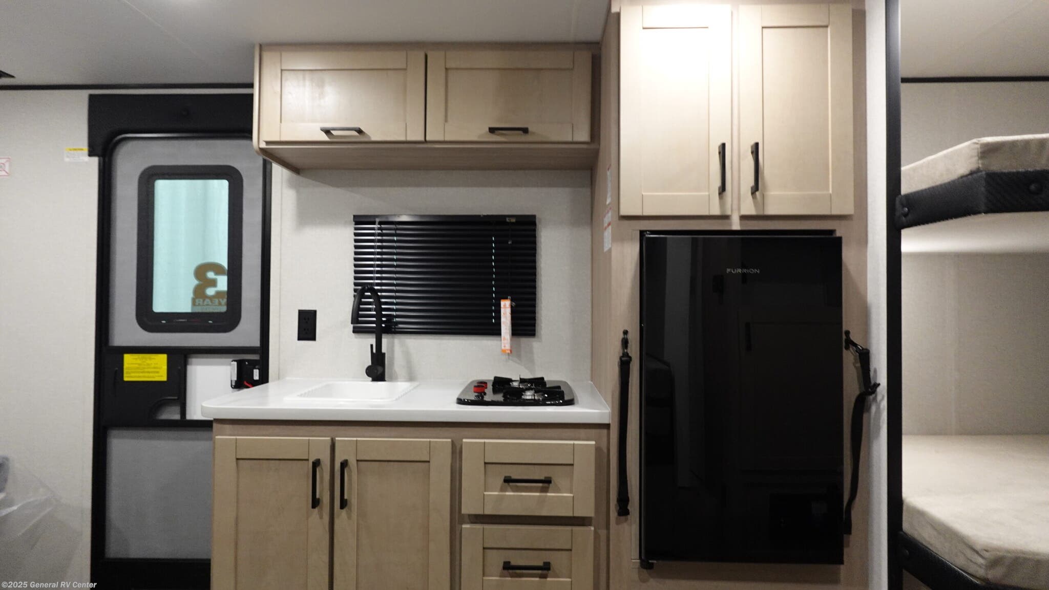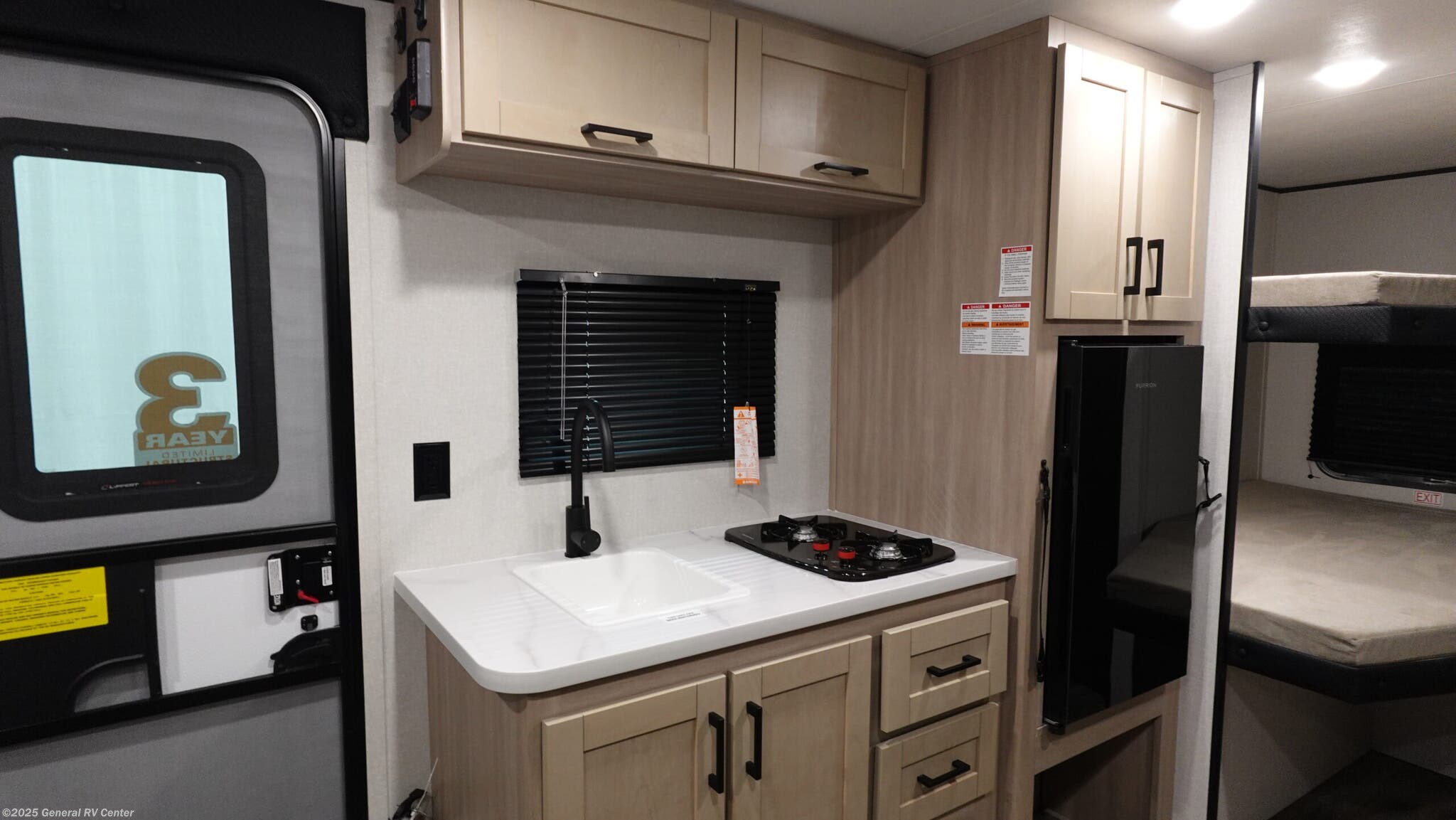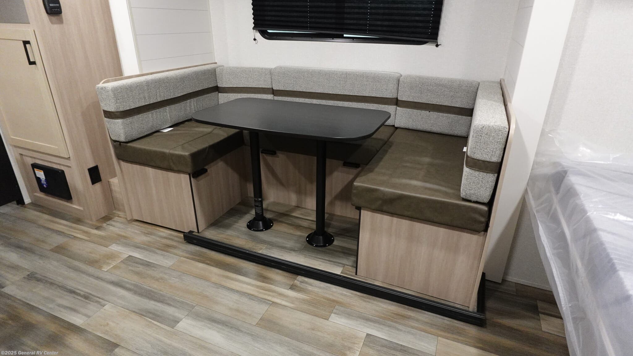 Open Range RV Colt travel trailer 17DBS - CTR Edition highlights: Double-Size Bunk Beds Overhead Cabinets Private Bath Front Queen Bed U-Shaped Dinette Slide This easy to tow travel trailer features compact sleeping spaces thanks to the double-size bunk beds in the rear corner, and the private bath is right next to the bunks for easy nighttime use! You'll have the front queen bed to yourselves, along with a wardrobe, nightstand, and overhead shelf for your things. And any other guests can convert the U-shaped dinette to sleeping space, allowing you to sleep eight total in this unit! A two-burner cooktop and microwave oven will let you make meals each day, and there is a 12V refrigerator to keep your cold items fresh. Outside, you'll enjoy the 10' power awning for added shade, and there are two exterior storage compartments to keep fishing poles, hiking gear and more! With any Colt travel trailer by Open Range RV, you can be sure you're getting a budget-friendly unit designed to fit your lifestyle! Each one is built to last with a PVC roofing membrane and built-in A-frame, plus there are nitrogen-filled radial tires and self-adjusting electric brakes for easy towing. You will appreciate the utilities that include 30-amp service, an A/C unit, and an on-demand tankless water heater. A few interior comforts include vinyl flooring throughout, solid hardwood cabinet doors, and residential grade kitchen countertops to make your space feel more like home.