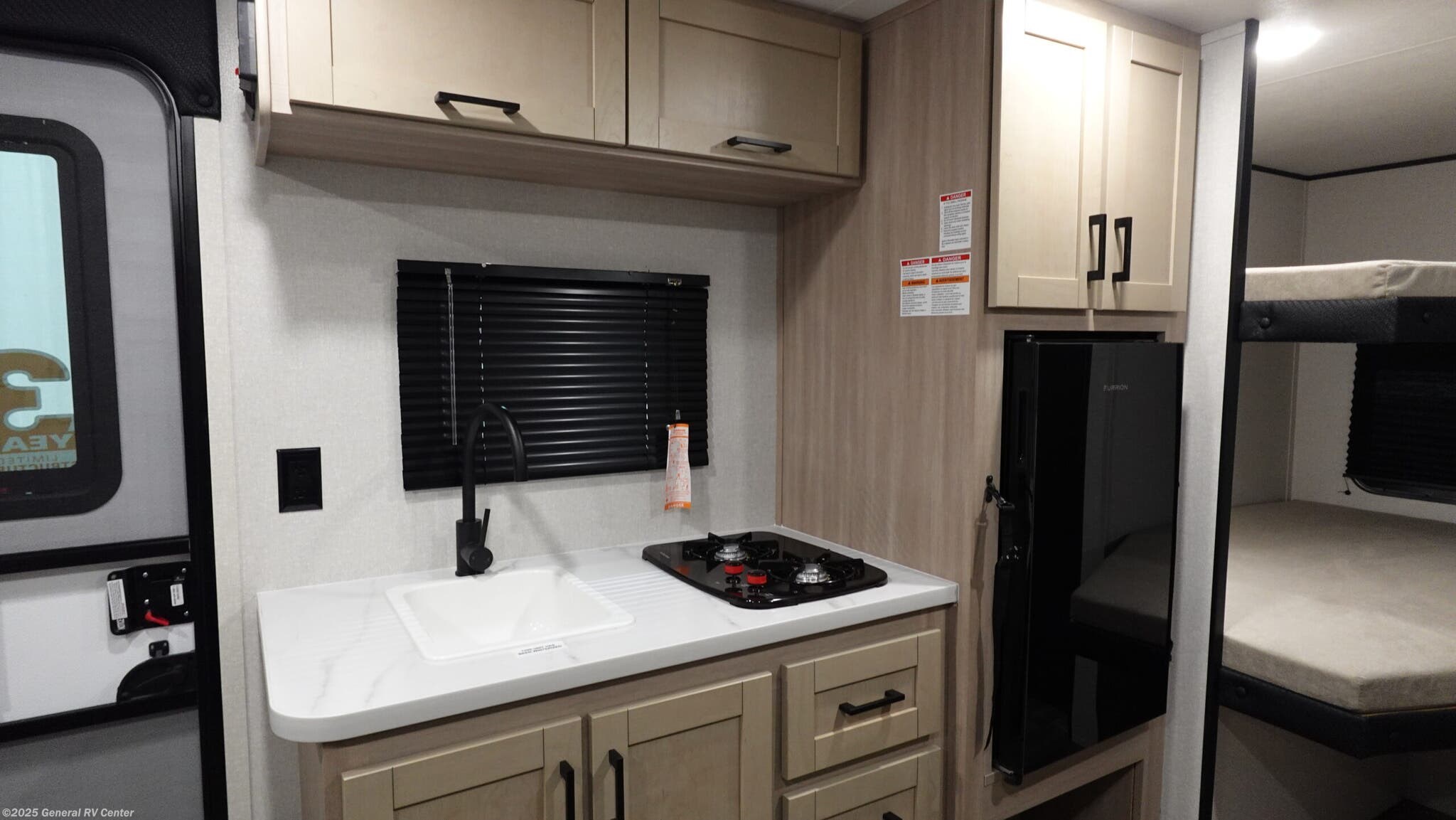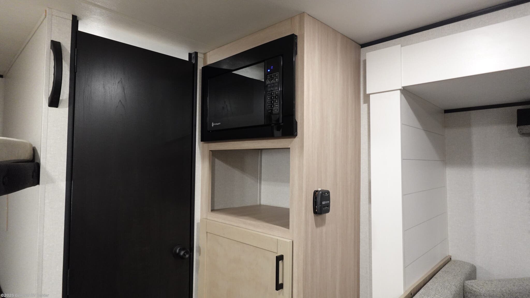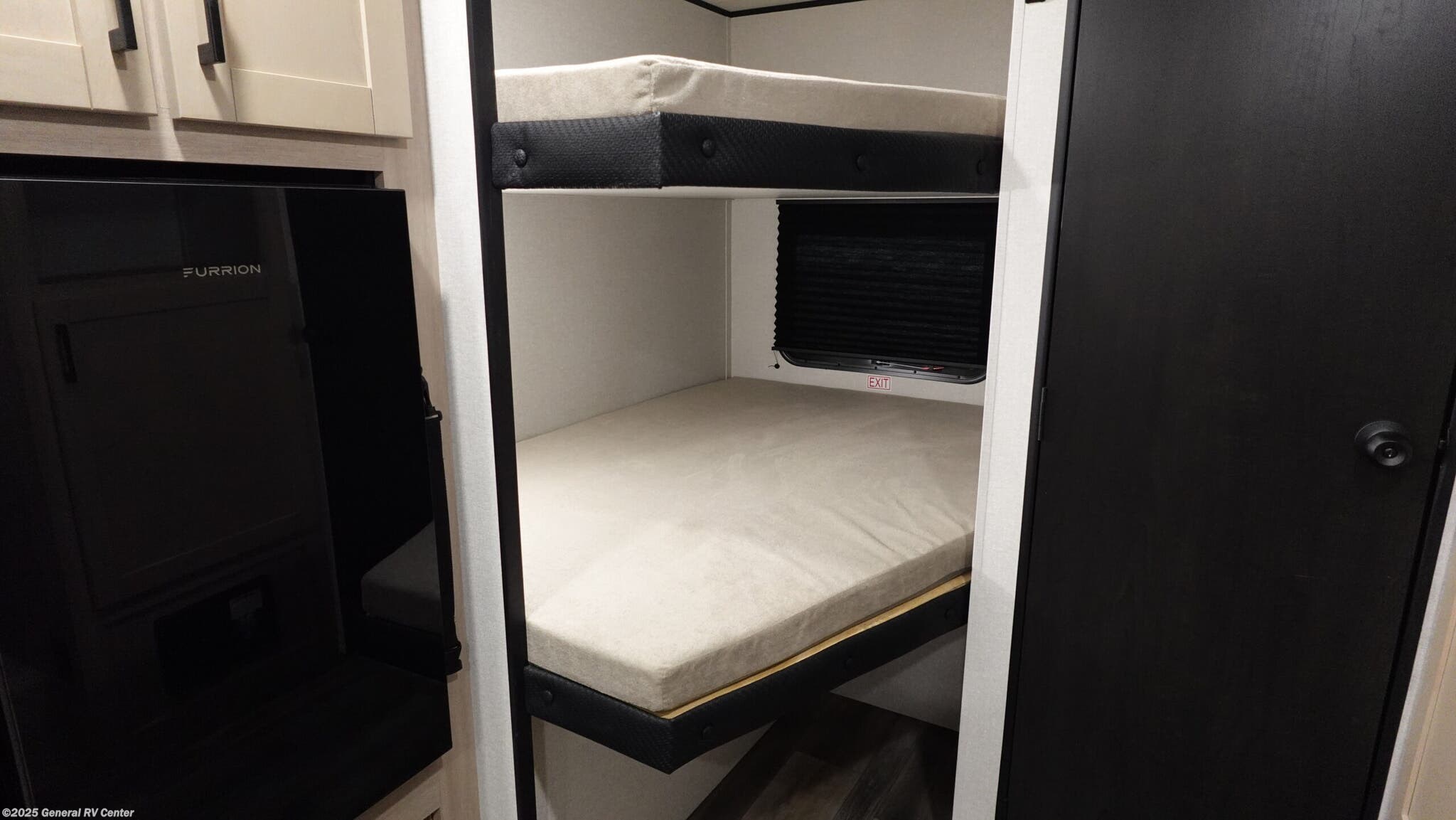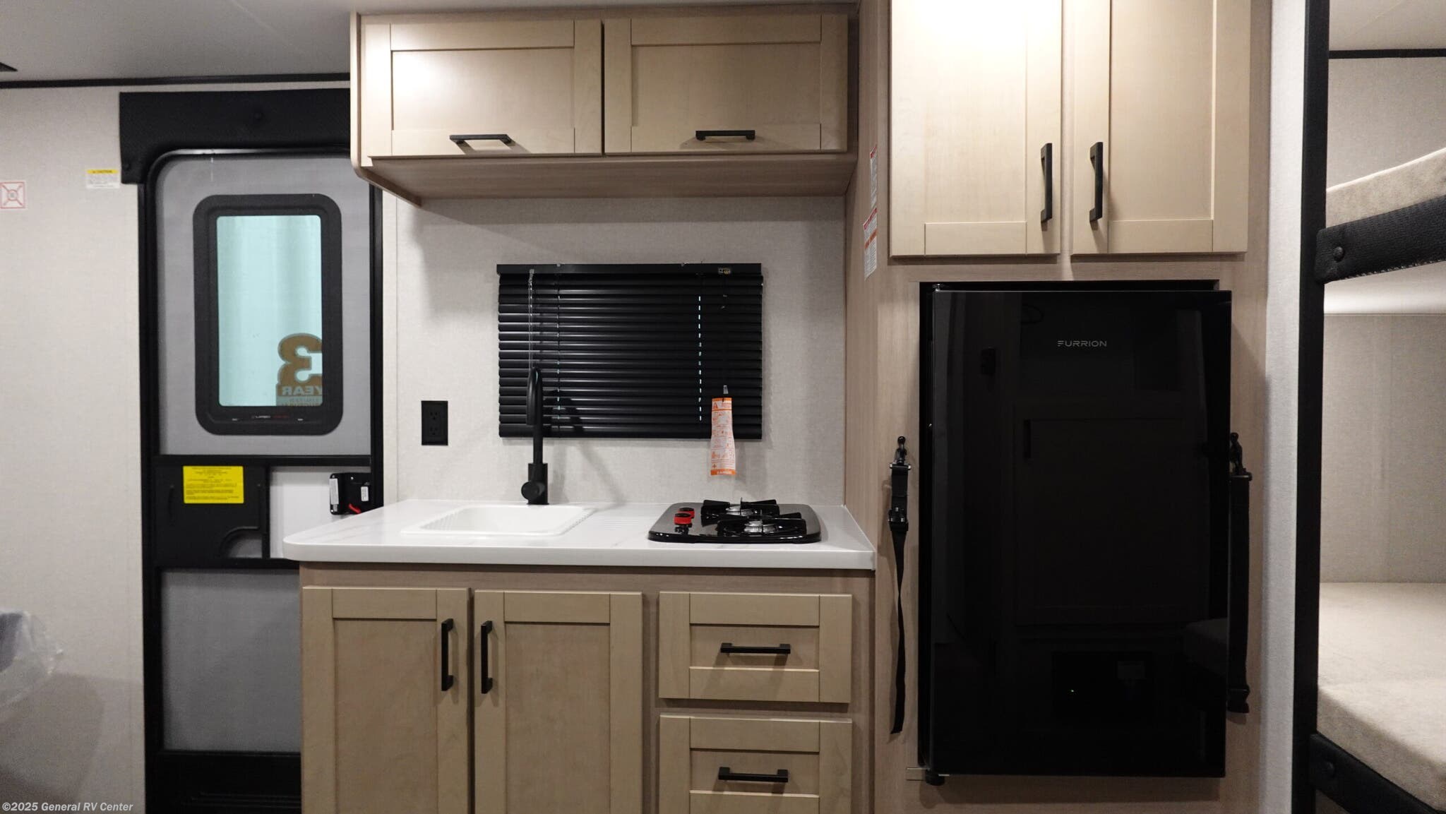 Open Range RV Colt travel trailer 17DBS - CTR Edition highlights: Double-Size Bunk Beds Overhead Cabinets Private Bath Front Queen Bed U-Shaped Dinette Slide This easy to tow travel trailer features compact sleeping spaces thanks to the double-size bunk beds in the rear corner, and the private bath is right next to the bunks for easy nighttime use! You'll have the front queen bed to yourselves, along with a wardrobe, nightstand, and overhead shelf for your things. And any other guests can convert the U-shaped dinette to sleeping space, allowing you to sleep eight total in this unit! A two-burner cooktop and microwave oven will let you make meals each day, and there is a 12V refrigerator to keep your cold items fresh. Outside, you'll enjoy the 10' power awning for added shade, and there are two exterior storage compartments to keep fishing poles, hiking gear and more! With any Colt travel trailer by Open Range RV, you can be sure you're getting a budget-friendly unit designed to fit your lifestyle! Each one is built to last with a PVC roofing membrane and built-in A-frame, plus there are nitrogen-filled radial tires and self-adjusting electric brakes for easy towing. You will appreciate the utilities that include 30-amp service, an A/C unit, and an on-demand tankless water heater. A few interior comforts include vinyl flooring throughout, solid hardwood cabinet doors, and residential grade kitchen countertops to make your space feel more like home.