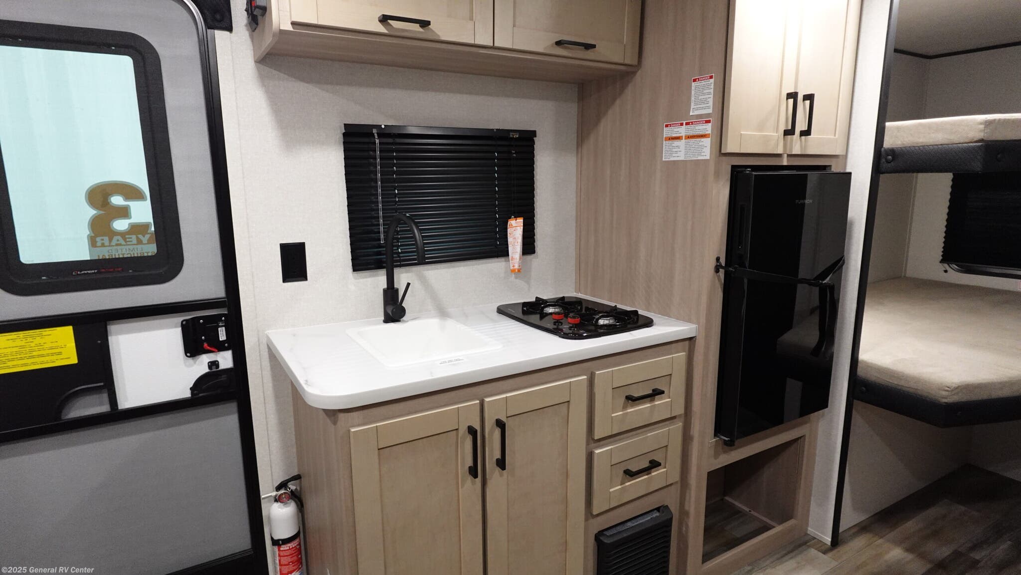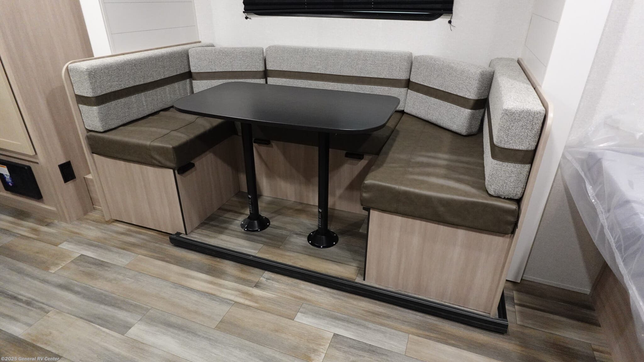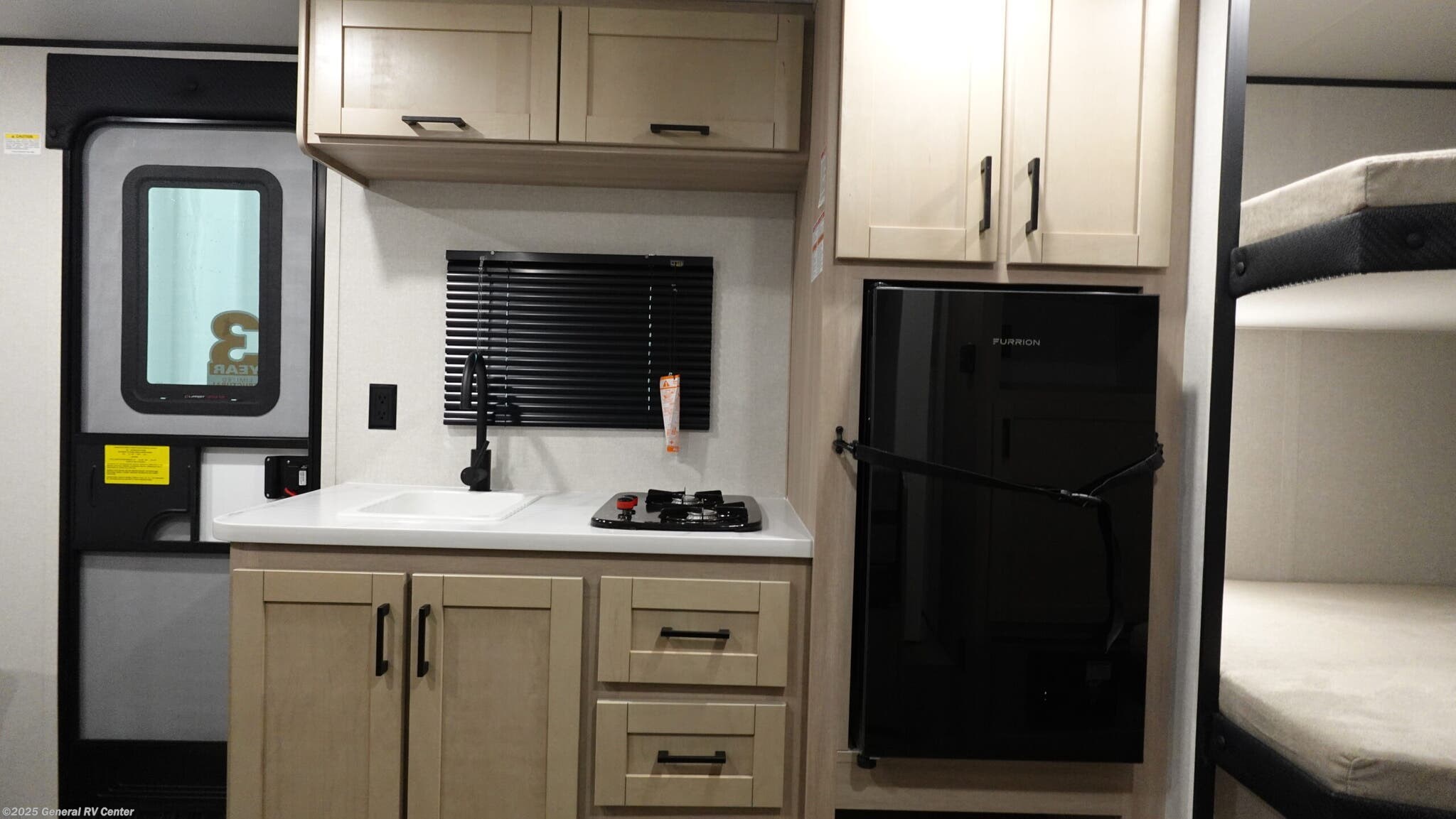 Open Range RV Colt travel trailer 17DBS - CTR Edition highlights: Double-Size Bunk Beds Overhead Cabinets Private Bath Front Queen Bed U-Shaped Dinette Slide This easy to tow travel trailer features compact sleeping spaces thanks to the double-size bunk beds in the rear corner, and the private bath is right next to the bunks for easy nighttime use! You'll have the front queen bed to yourselves, along with a wardrobe, nightstand, and overhead shelf for your things. And any other guests can convert the U-shaped dinette to sleeping space, allowing you to sleep eight total in this unit! A two-burner cooktop and microwave oven will let you make meals each day, and there is a 12V refrigerator to keep your cold items fresh. Outside, you'll enjoy the 10' power awning for added shade, and there are two exterior storage compartments to keep fishing poles, hiking gear and more! With any Colt travel trailer by Open Range RV, you can be sure you're getting a budget-friendly unit designed to fit your lifestyle! Each one is built to last with a PVC roofing membrane and built-in A-frame, plus there are nitrogen-filled radial tires and self-adjusting electric brakes for easy towing. You will appreciate the utilities that include 30-amp service, an A/C unit, and an on-demand tankless water heater. A few interior comforts include vinyl flooring throughout, solid hardwood cabinet doors, and residential grade kitchen countertops to make your space feel more like home.