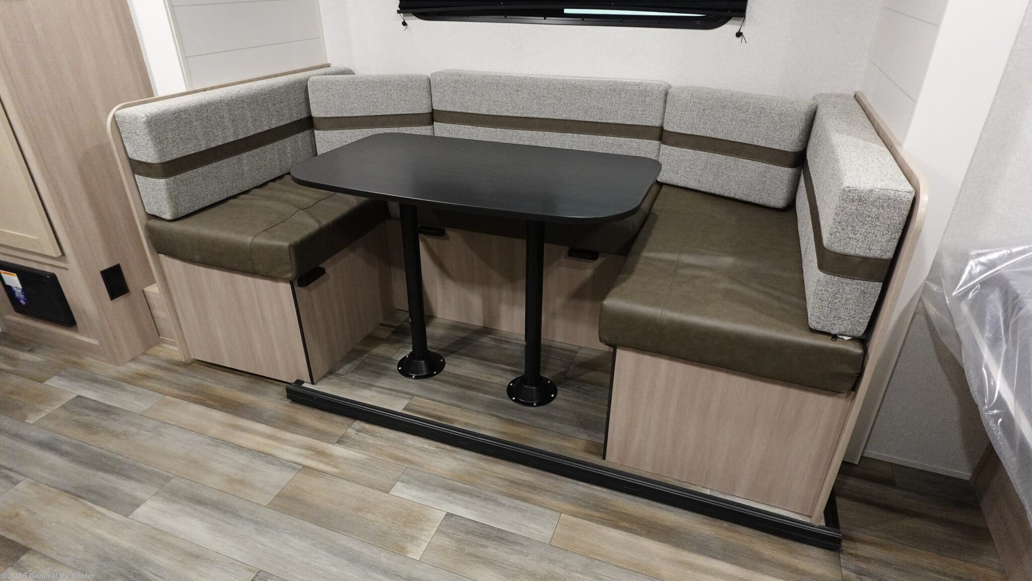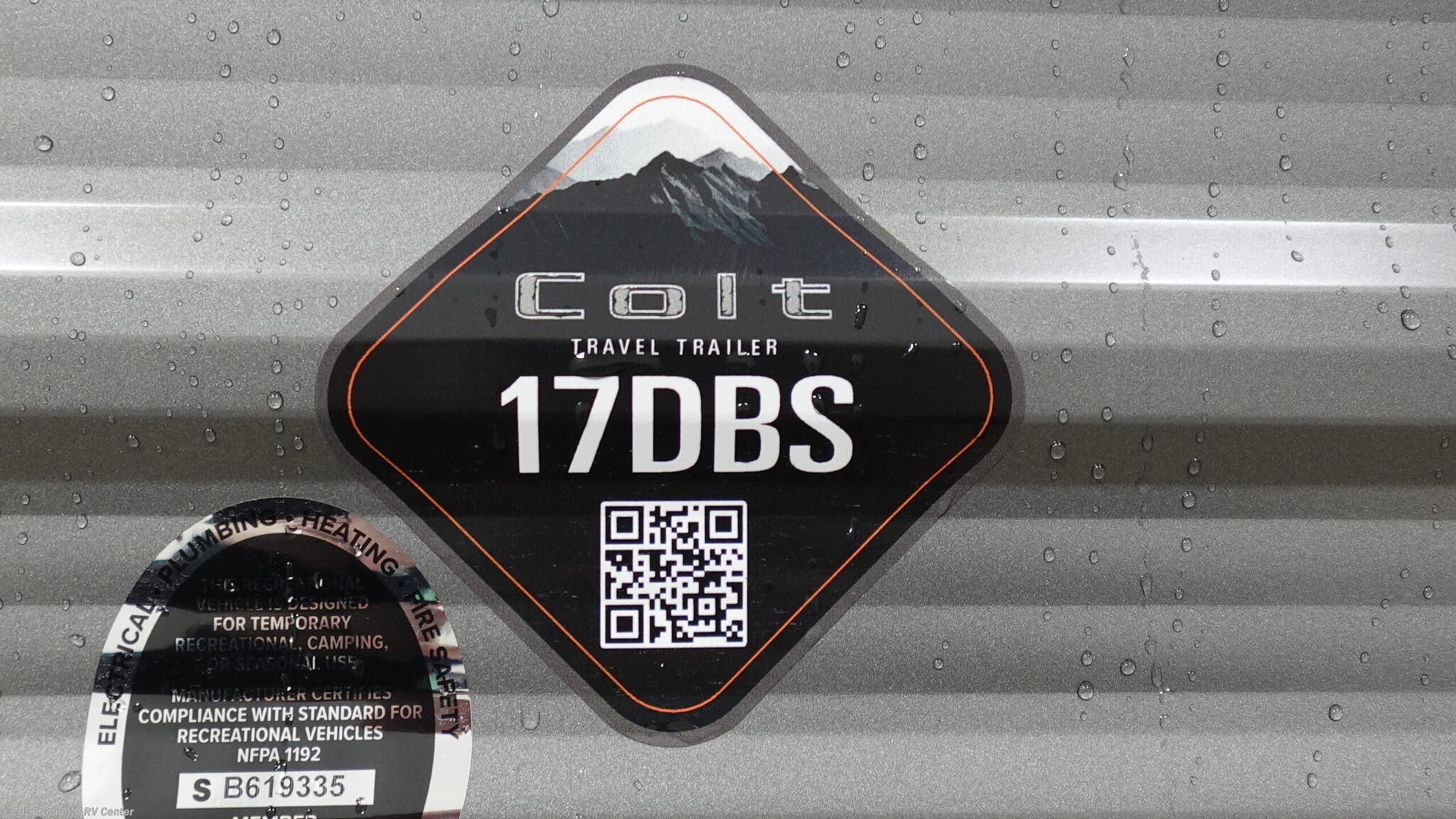 Open Range RV Colt travel trailer 17DBS - CTR Edition highlights: Double-Size Bunk Beds Overhead Cabinets Private Bath Front Queen Bed U-Shaped Dinette Slide This easy to tow travel trailer features compact sleeping spaces thanks to the double-size bunk beds in the rear corner, and the private bath is right next to the bunks for easy nighttime use! You'll have the front queen bed to yourselves, along with a wardrobe, nightstand, and overhead shelf for your things. And any other guests can convert the U-shaped dinette to sleeping space, allowing you to sleep eight total in this unit! A two-burner cooktop and microwave oven will let you make meals each day, and there is a 12V refrigerator to keep your cold items fresh. Outside, you'll enjoy the 10' power awning for added shade, and there are two exterior storage compartments to keep fishing poles, hiking gear and more! With any Colt travel trailer by Open Range RV, you can be sure you're getting a budget-friendly unit designed to fit your lifestyle! Each one is built to last with a PVC roofing membrane and built-in A-frame, plus there are nitrogen-filled radial tires and self-adjusting electric brakes for easy towing. You will appreciate the utilities that include 30-amp service, an A/C unit, and an on-demand tankless water heater. A few interior comforts include vinyl flooring throughout, solid hardwood cabinet doors, and residential grade kitchen countertops to make your space feel more like home.