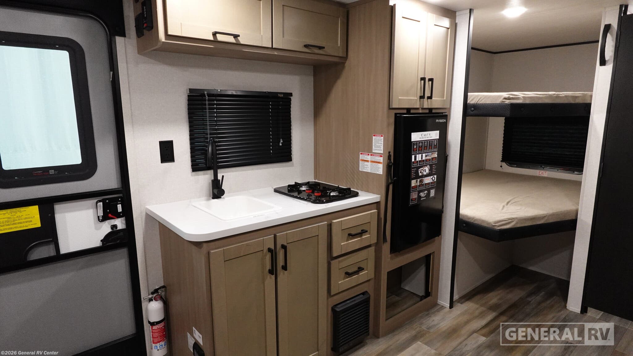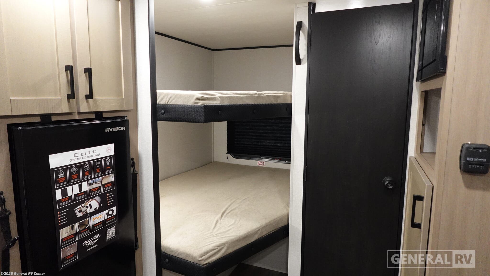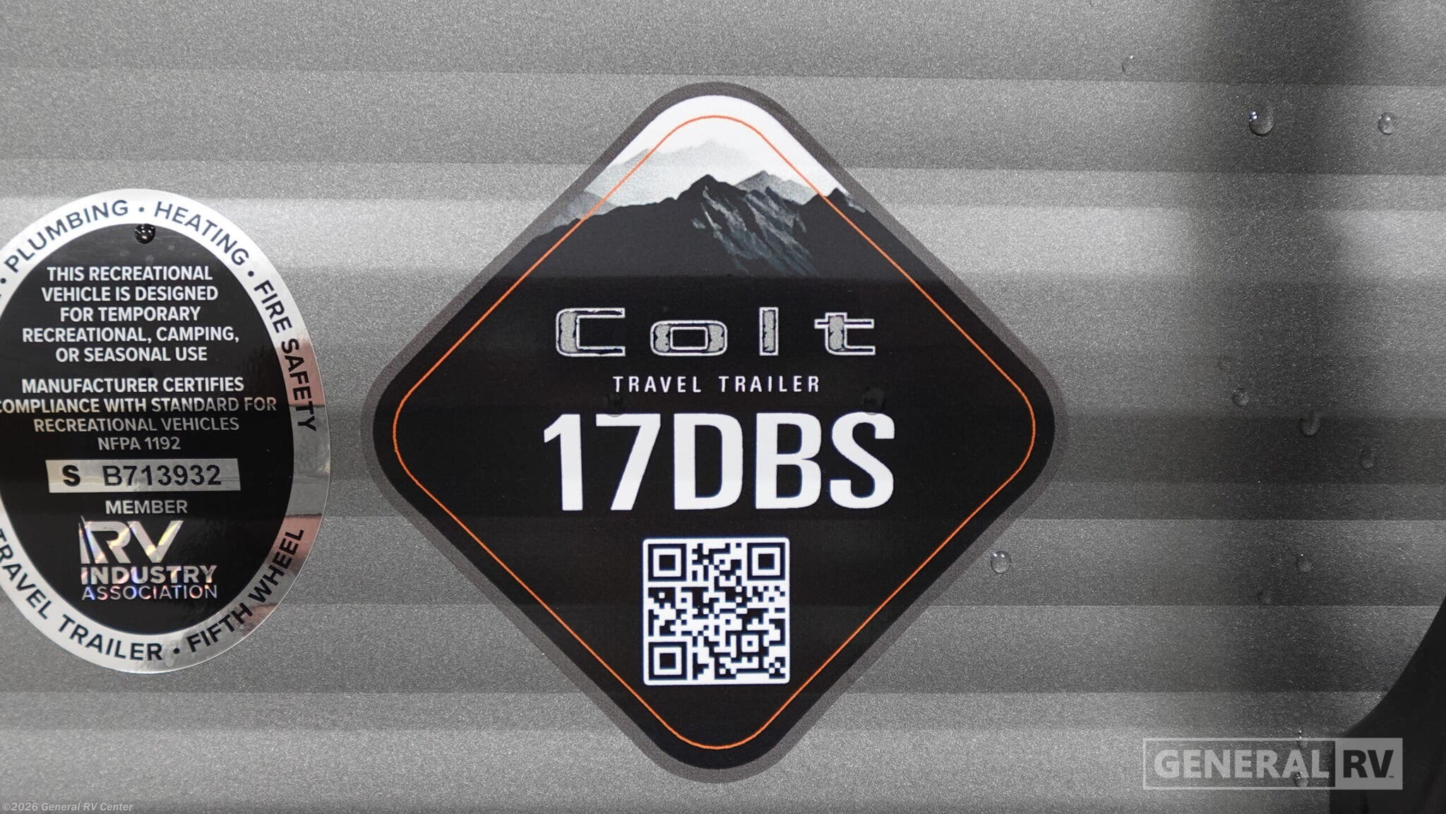 **Open Range RV Colt travel trailer 17DBS - CTR Edition highlights:** - Double-Size Bunk Beds - Overhead Cabinets - Private Bath - Front Queen Bed - U-Shaped Dinette Slide This easy to tow travel trailer features compact sleeping spaces thanks to the double-size bunk beds in the rear corner, and the private bath is right next to the bunks for easy nighttime use! You'll have the front queen bed to yourselves, along with a wardrobe, nightstand, and overhead shelf for your things. And any other guests can convert the U-shaped dinette to sleeping space, allowing you to sleep eight total in this unit! A two-burner cooktop and microwave oven will let you make meals each day, and there is a 12V refrigerator to keep your cold items fresh. Outside, you'll enjoy the 10' power awning for added shade, and there are two exterior storage compartments to keep fishing poles, hiking gear and more! With any Colt travel trailer by Open Range RV, you can be sure you're getting a budget-friendly unit designed to fit your lifestyle! Each one is built to last with a PVC roofing membrane and built-in A-frame, plus there are nitrogen-filled radial tires and self-adjusting electric brakes for easy towing. You will appreciate the utilities that include 30-amp service, an A/C unit, and an on-demand tankless water heater. A few interior comforts include vinyl flooring throughout, solid hardwood cabinet doors, and residential grade kitchen countertops to make your space feel more like home.