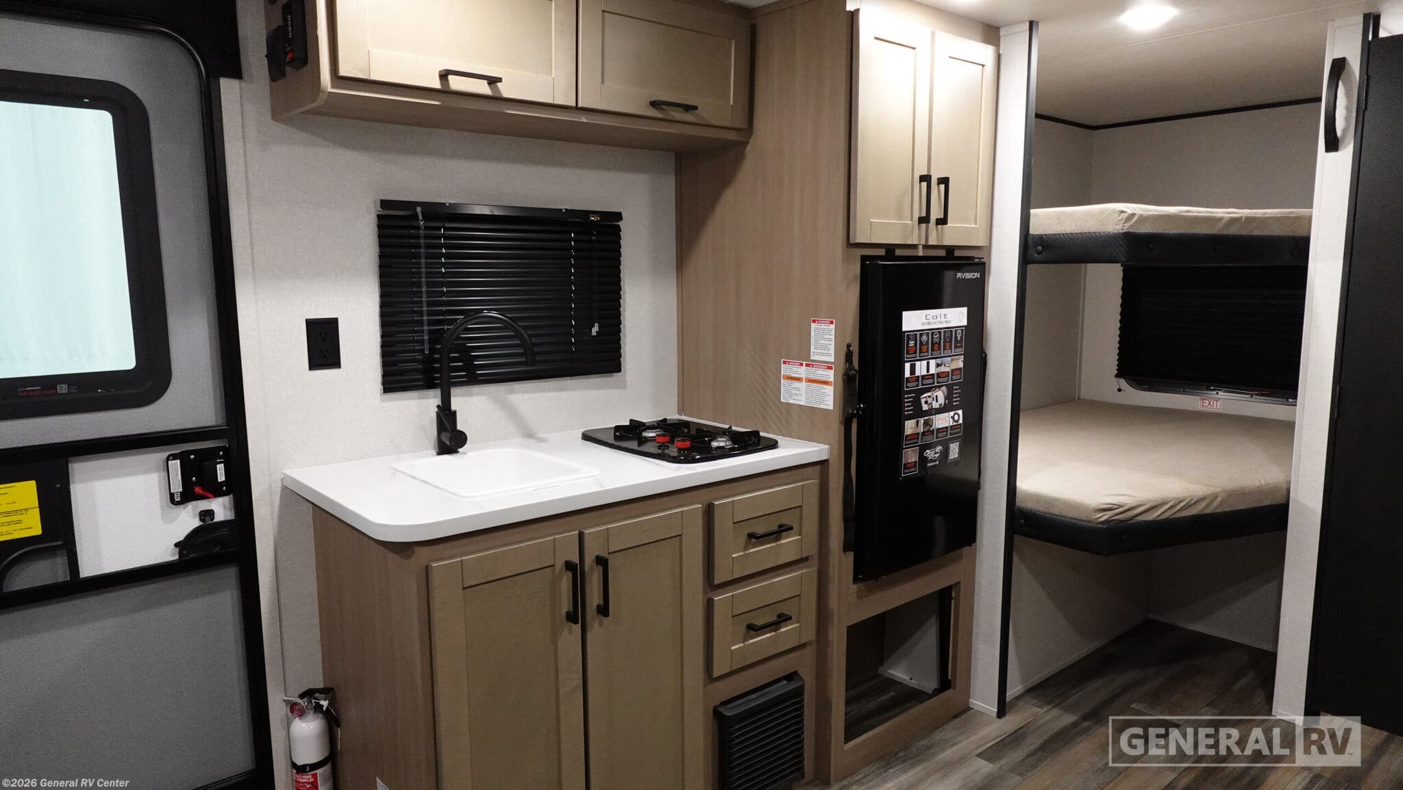 **Open Range RV Colt travel trailer 17DBS - CTR Edition highlights:** - Double-Size Bunk Beds - Overhead Cabinets - Private Bath - Front Queen Bed - U-Shaped Dinette Slide This easy to tow travel trailer features compact sleeping spaces thanks to the double-size bunk beds in the rear corner, and the private bath is right next to the bunks for easy nighttime use! You'll have the front queen bed to yourselves, along with a wardrobe, nightstand, and overhead shelf for your things. And any other guests can convert the U-shaped dinette to sleeping space, allowing you to sleep eight total in this unit! A two-burner cooktop and microwave oven will let you make meals each day, and there is a 12V refrigerator to keep your cold items fresh. Outside, you'll enjoy the 10' power awning for added shade, and there are two exterior storage compartments to keep fishing poles, hiking gear and more! With any Colt travel trailer by Open Range RV, you can be sure you're getting a budget-friendly unit designed to fit your lifestyle! Each one is built to last with a PVC roofing membrane and built-in A-frame, plus there are nitrogen-filled radial tires and self-adjusting electric brakes for easy towing. You will appreciate the utilities that include 30-amp service, an A/C unit, and an on-demand tankless water heater. A few interior comforts include vinyl flooring throughout, solid hardwood cabinet doors, and residential grade kitchen countertops to make your space feel more like home.