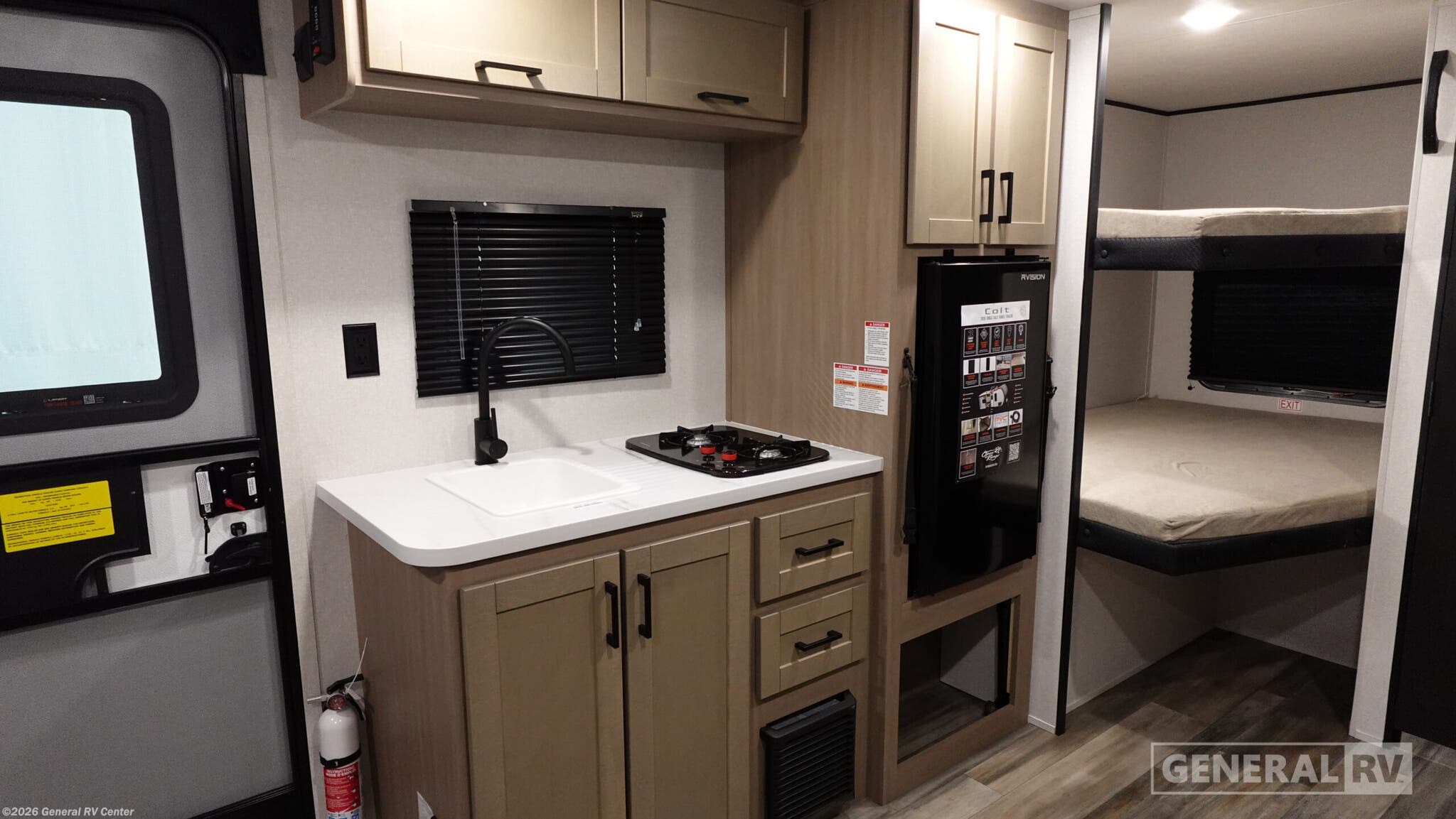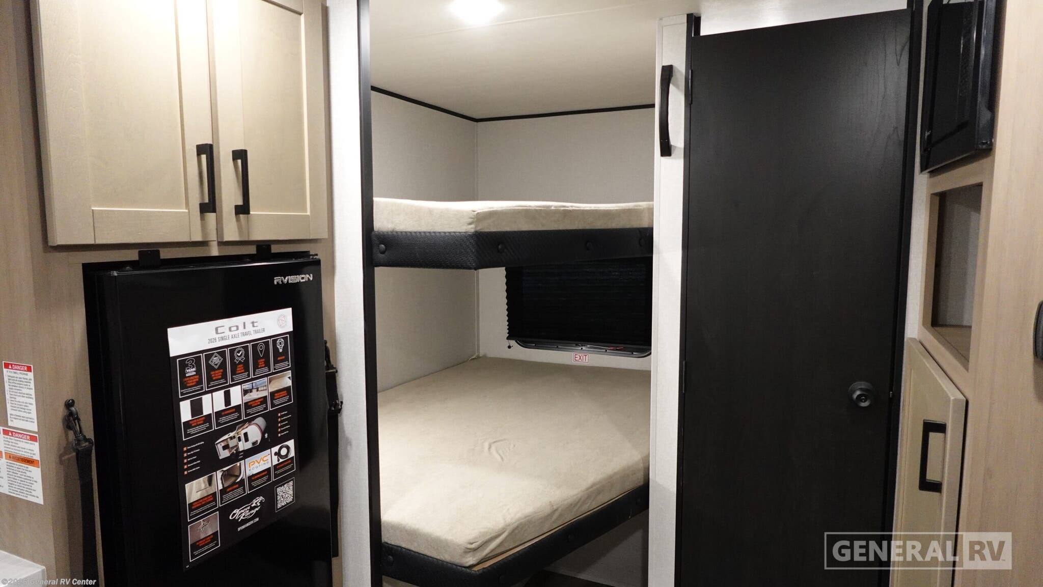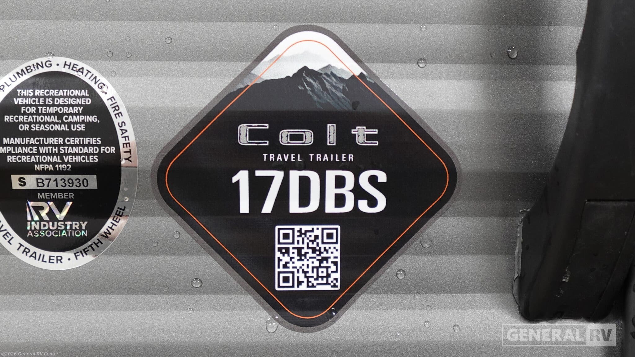 **Open Range RV Colt travel trailer 17DBS - CTR Edition highlights:** - Double-Size Bunk Beds - Overhead Cabinets - Private Bath - Front Queen Bed - U-Shaped Dinette Slide This easy to tow travel trailer features compact sleeping spaces thanks to the double-size bunk beds in the rear corner, and the private bath is right next to the bunks for easy nighttime use! You'll have the front queen bed to yourselves, along with a wardrobe, nightstand, and overhead shelf for your things. And any other guests can convert the U-shaped dinette to sleeping space, allowing you to sleep eight total in this unit! A two-burner cooktop and microwave oven will let you make meals each day, and there is a 12V refrigerator to keep your cold items fresh. Outside, you'll enjoy the 10' power awning for added shade, and there are two exterior storage compartments to keep fishing poles, hiking gear and more! With any Colt travel trailer by Open Range RV, you can be sure you're getting a budget-friendly unit designed to fit your lifestyle! Each one is built to last with a PVC roofing membrane and built-in A-frame, plus there are nitrogen-filled radial tires and self-adjusting electric brakes for easy towing. You will appreciate the utilities that include 30-amp service, an A/C unit, and an on-demand tankless water heater. A few interior comforts include vinyl flooring throughout, solid hardwood cabinet doors, and residential grade kitchen countertops to make your space feel more like home.